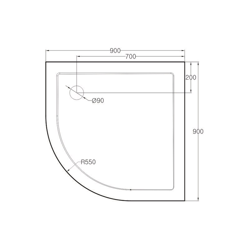 Sprchový set: kút štvrťkruh, 90x90x185 cm, R550, chróm ALU, sklo Chinchilla, SMC vanička nízka