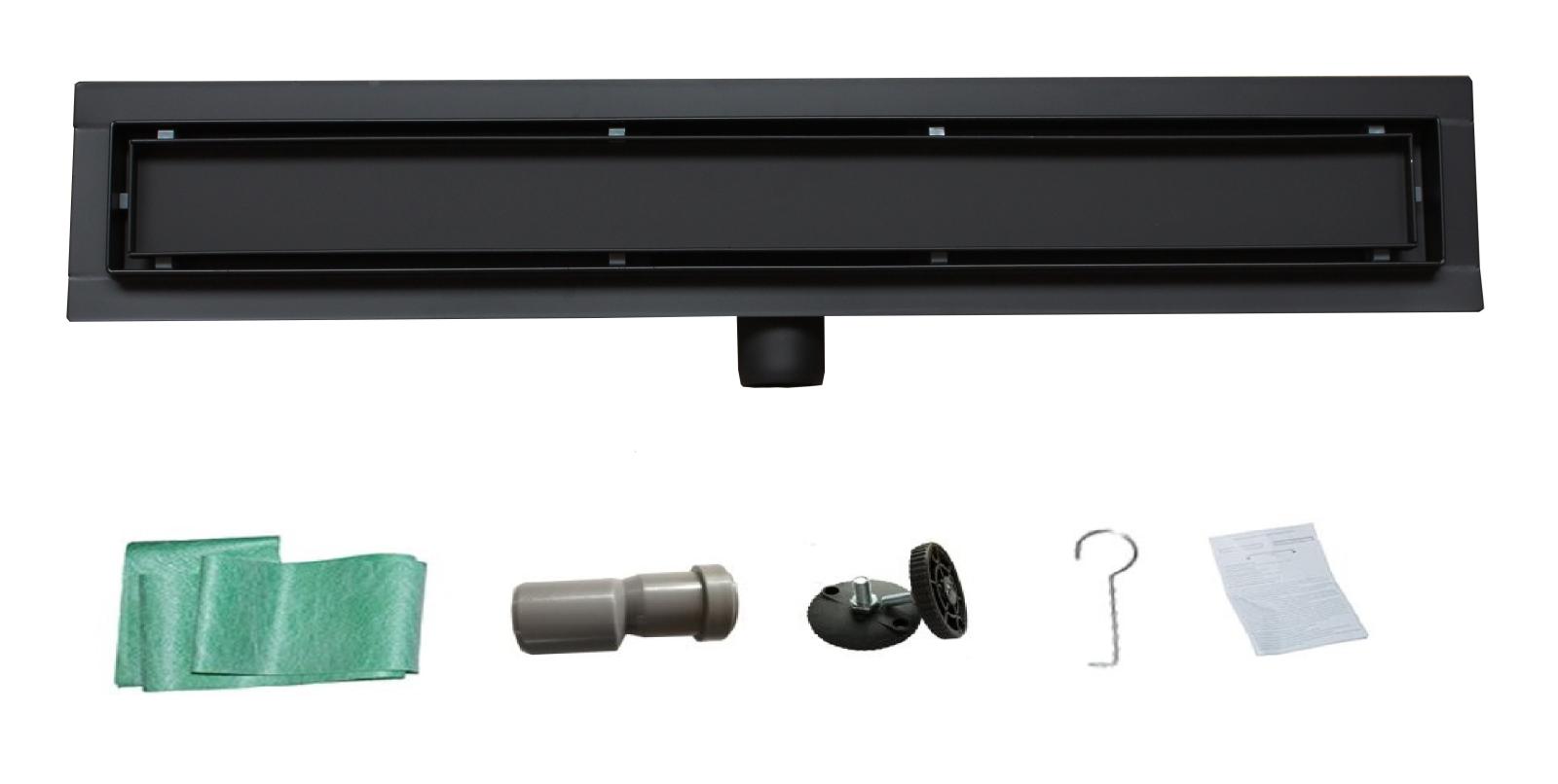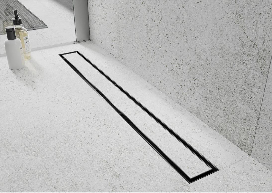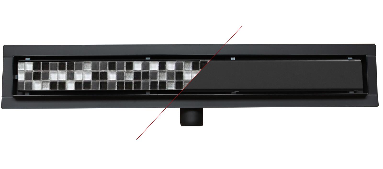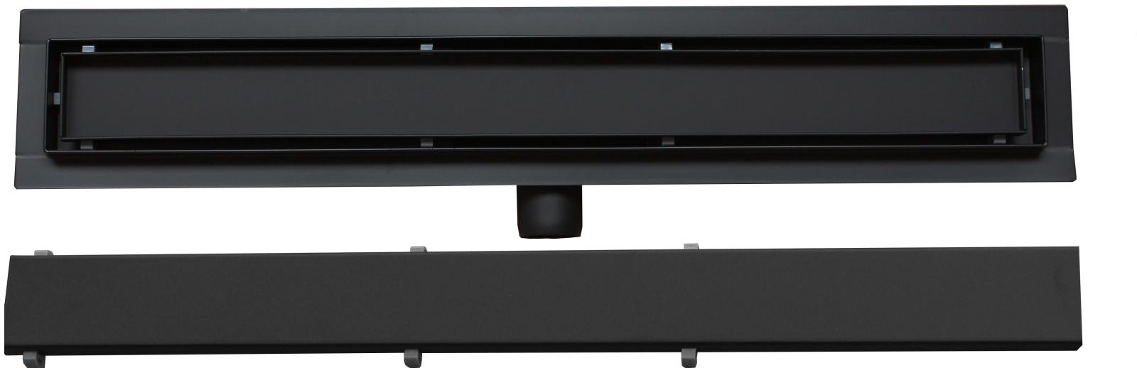 Odtokový sprchový žľab FLAT 2v1 - čierny - hladký vrchný kryt pretočením ponúkne možnosť vloženia dlažby