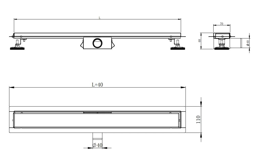 Odtokový sprchový žľab je vyrobený z nerezovej ocele akosti AISI 304 s hrúbkou 1,2 mm a ponúka dve možnosti jeho zabudovania : do žľabu ľahko zabudujete dlažbu, alebo môžete vrchnú mriežku otočiť a získať tak dekoračný rošt v čiernej farbe. Veľmi kvalitný materiál zaručuje pevnosť mriežky aj pri veľkom zaťažení. Výhodou našich odtokových žľabov je, že ich možno namontovať do priestoru rovnako ako k stene sprchového kúta.