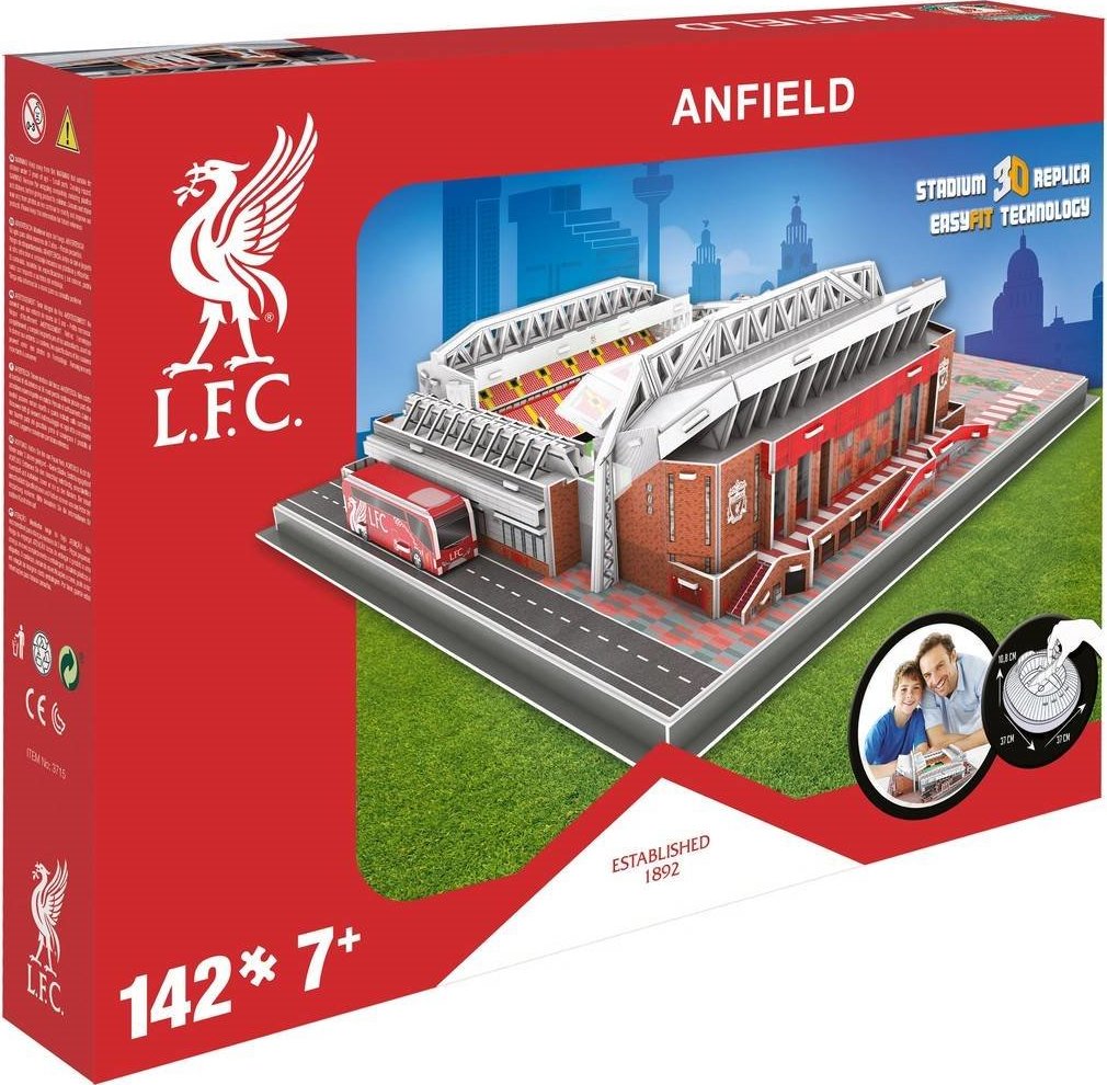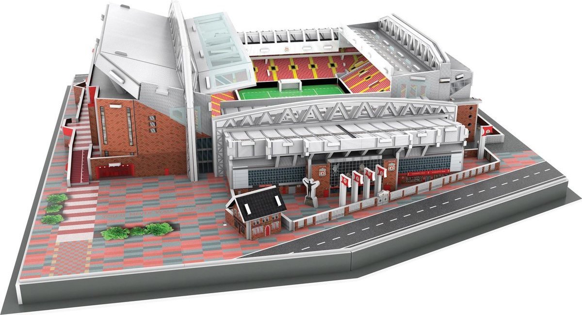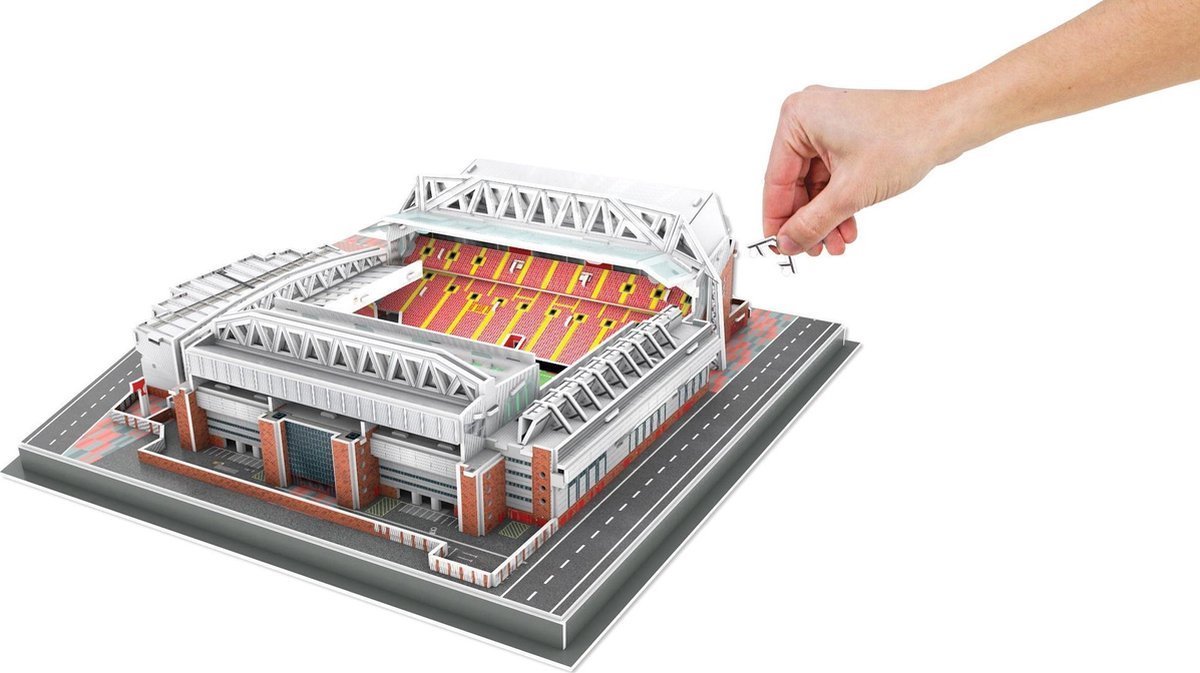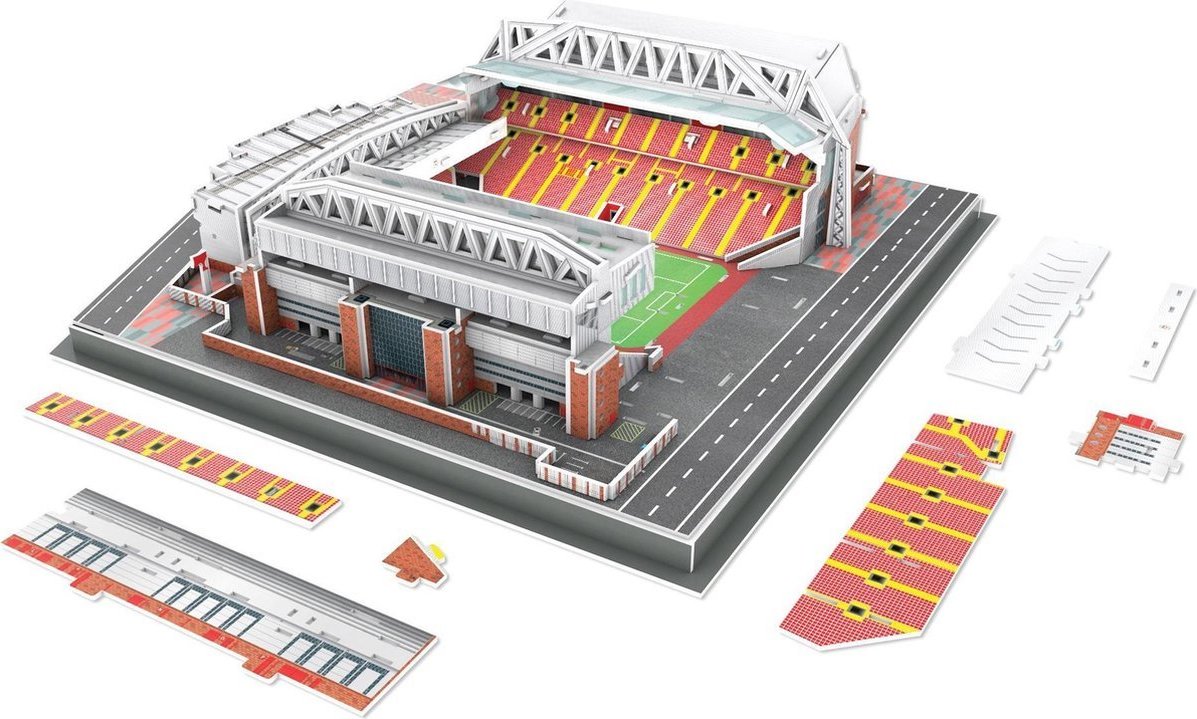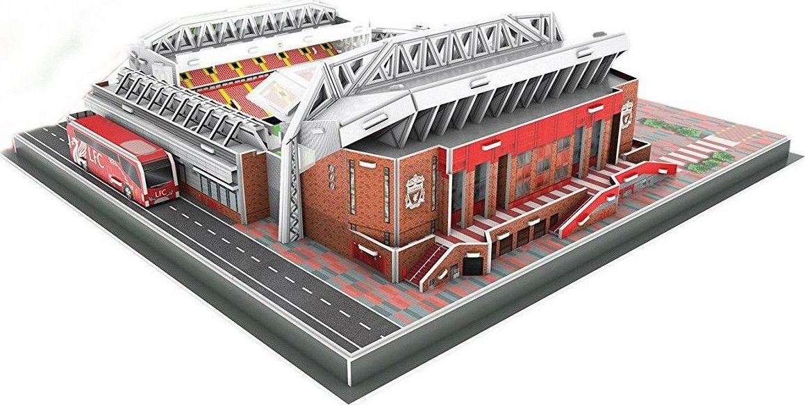 3D puzzle Štadión Anfield - domáce ihrisko FC Liverpool. Na skladanie nepotrebujete nožnice ani lepidlo. Detailná replika štadióna, vyrobená z polystyrénovej peny potiahnutej fotopapierom. Ideálny darček pre všetkých futbalových fanúšikov.