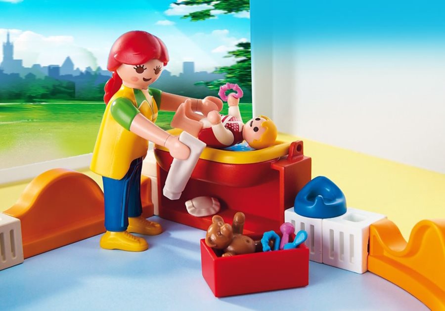 Baby kútik s množstvom príslušenstva a výbavy pre malé dojčatá. Postaraj sa o bábätko, posaď ho na stoličku a daj mu najesť alebo ho pohoupej na hojdačke. V baby kútiku nájdeš aj pult na prebalenie, nočník a ďalšie doplnky.