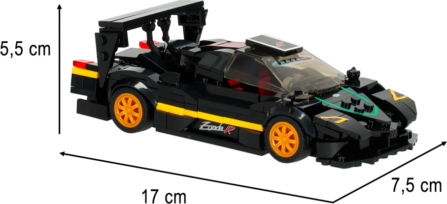 Tento model vozidla Pagani Zonda R s 387 dielikmi je replikou skutočného vozidla v mierke 1:28. Po zostavení meria model 17 x 7,5 x 5,5 cm. Súčasťou je podrobný návod na zostavenie. Súprava podporuje rozvoj jemnej motoriky, trpezlivosti a sústredenia. Vhodné pre deti od 6 rokov.