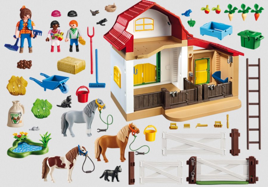 Balenie obsahuje: 3 figúrky (1 figúrka meria 7,5 cm, 2 figúrky meria 5,25 cm), 3 poníkmi, farmu, ohradu a ďalšie príslušenstvo.