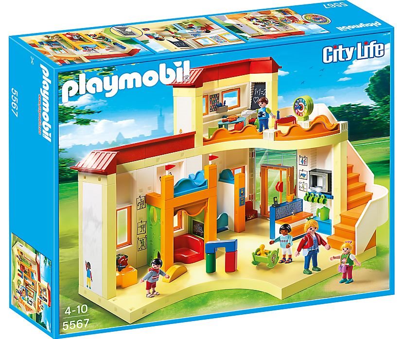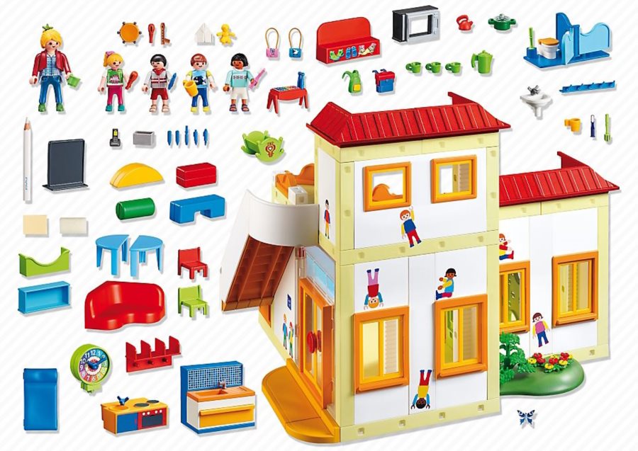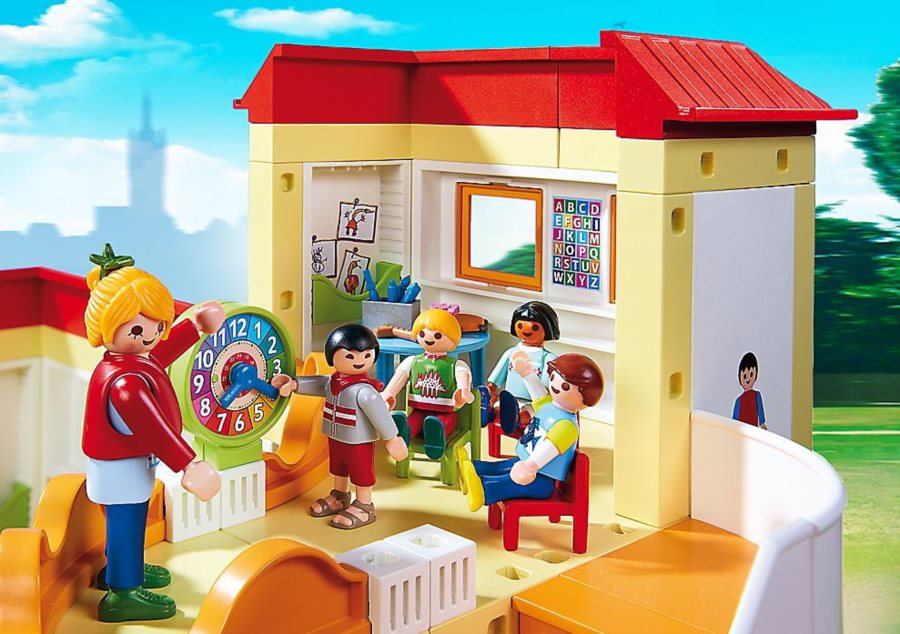Škôlka s plne vybavenou kuchynkou. V škôlke sa môžeš zoznámiť s novými kamarátmi. Môžeš si hrať, kresliť, spievať a učiť sa. Daj si malú desiatu a naber ďalšie sily na hranie s kamarátmi. V škôlke je funkčný tabuľa a nastaviteľné hodiny.