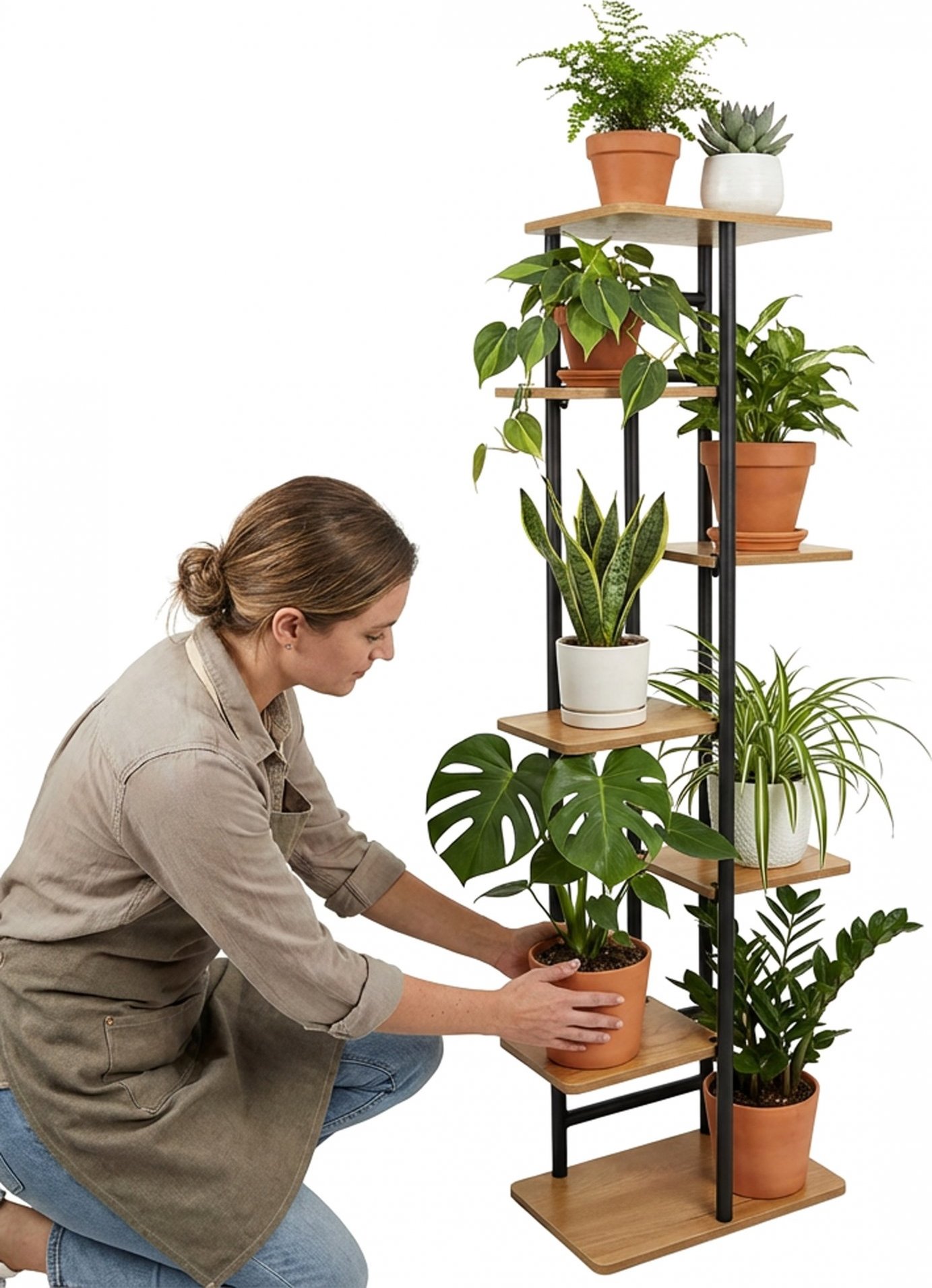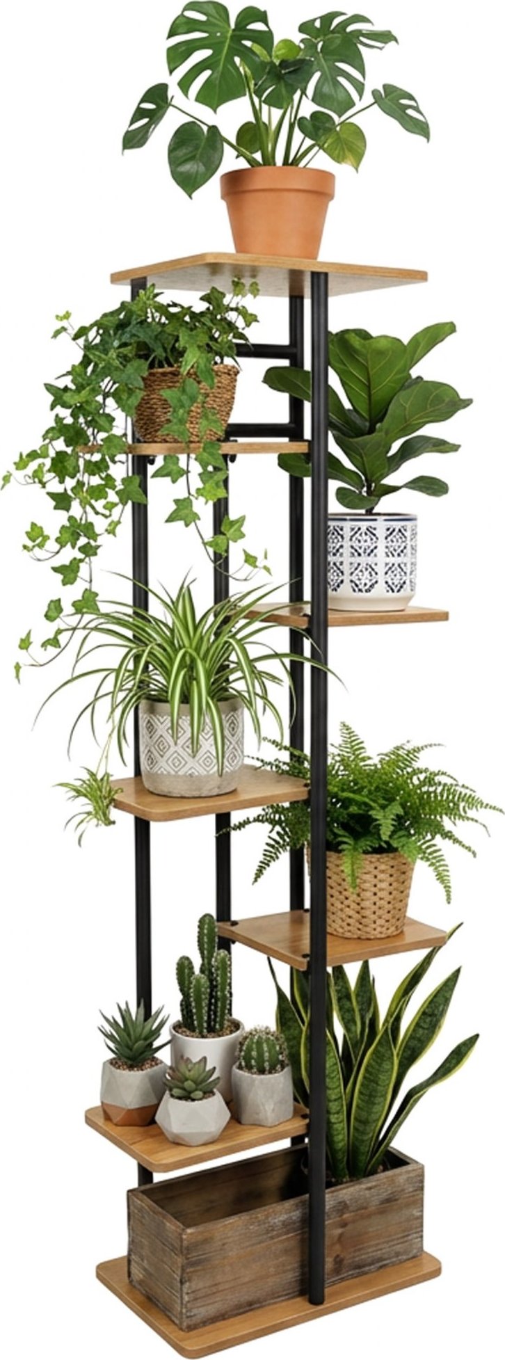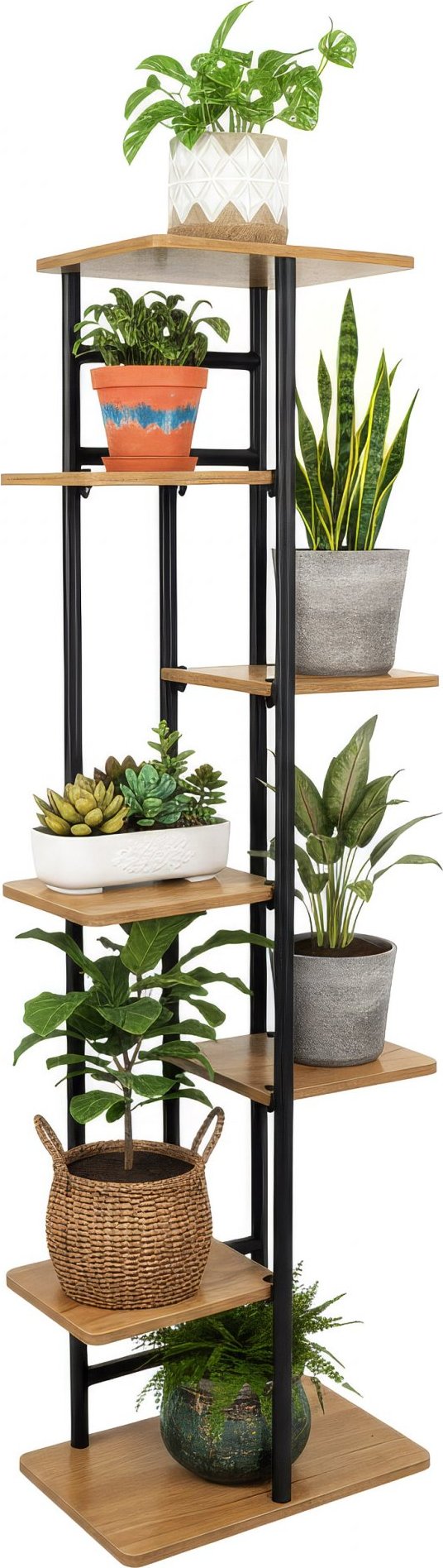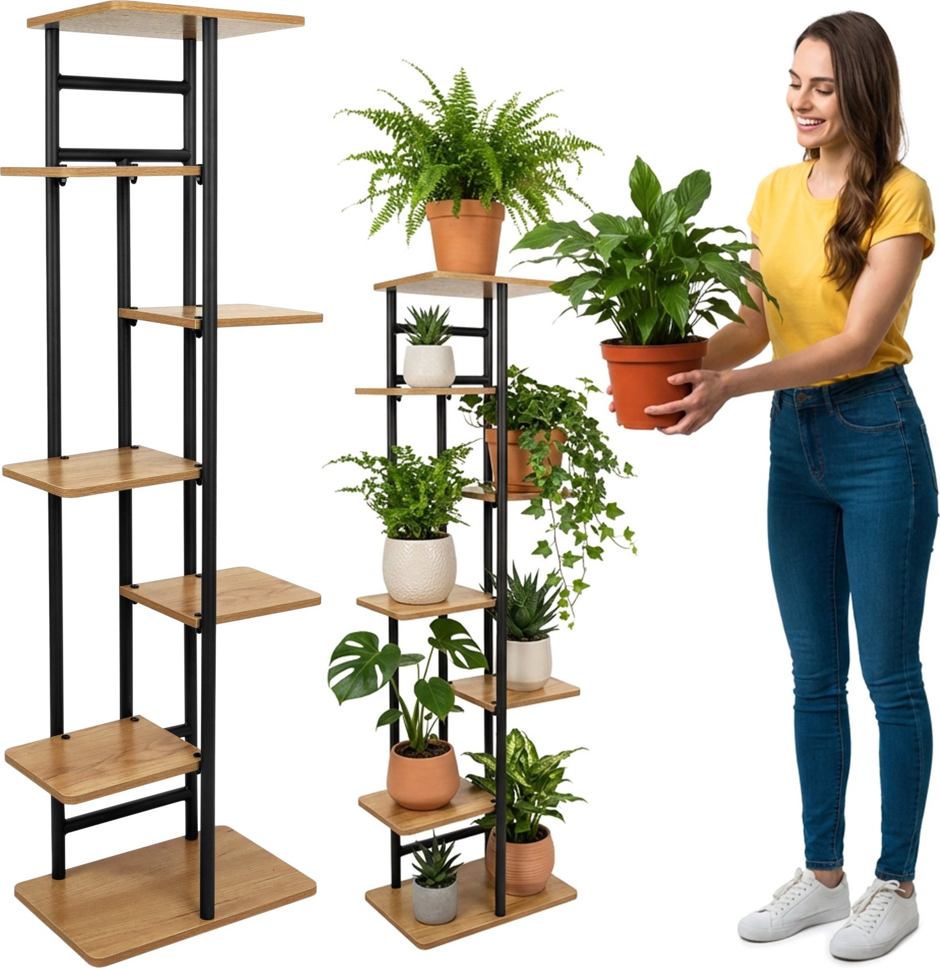 Stojan na kvety Bastian Craft je praktické a štýlové riešenie, ktoré pomáha usporiadať priestor a efektívne prezentovať rastliny vo vašej domácnosti alebo kancelárii. Umožňuje súčasné vystavenie niekoľkých kvetináčov bez toho, aby zaberal miesto na podlahe. Jeho vertikálny tvar a moderný vzhľad dodávajú interiéru viac zelene, vytvárajú harmonické usporiadanie a estetiku, ktorá je v súlade so súčasnými designovými trendmi.