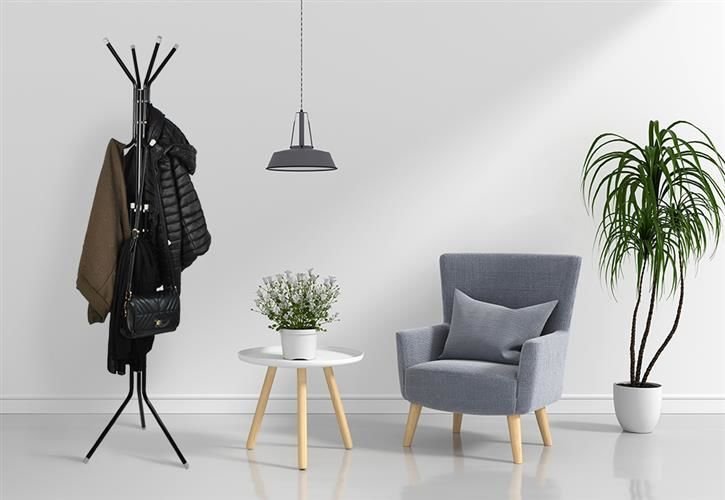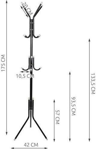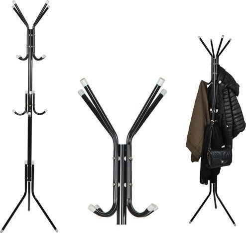 12 háčikov v 3 úrovniach umožňuje zavesiť veľké množstvo oblečenia, pokrývok hlavy alebo dáždnikov.