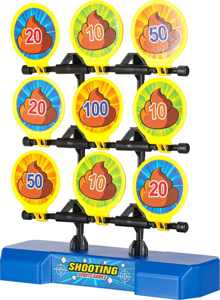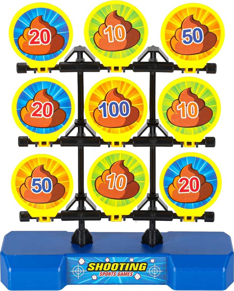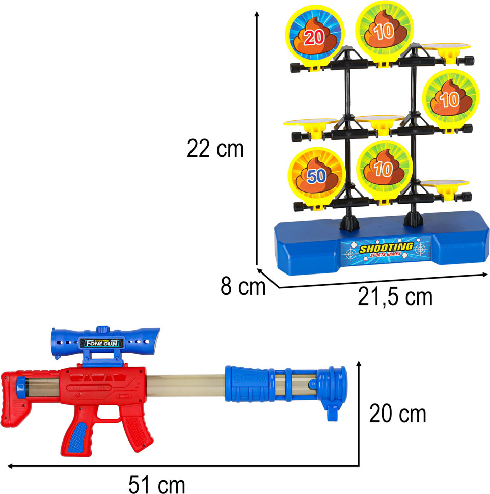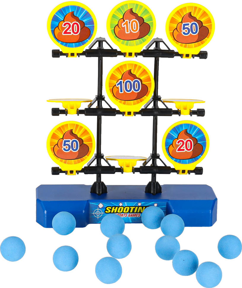 Ako presne výrobok funguje? Aby ste si hru zahrali, musíte najskôr nabiť zbraň – našťastie je to veľmi jednoduché. Umiestnite guľôčku do prednej časti zbrane, zatiahnite pažbu a potom ju dynamicky zatlačte dopredu, aby ste vystrelili na cieľ. Úloha sa zdá byť jednoduchá, ale nič nemôže byť ďalej od pravdy! Bude to chcieť veľa cviku, aby ste správne vystrelili. Ale ak sa vám to podarí, hra vám prinesie veľa uspokojenia najmä pre toho, kto na terči dosiahne najvyššie skóre! Je ľahké posúdiť, koľko bodov za výstrel patrí! Keď zasiahnete puk s napísaným číslom, puk sa posunie dozadu. Takže nemusíte premýšľať, kam loptička dopadla! Sami si vymyslíte množstvo pravidiel a budete hrať, ako sa vám zapáči! Sada obsahuje 12 nábojov, takže si ich môžete na začiatku hry rovnomerne rozdeliť, alebo každý vystrelí dvanásťkrát!