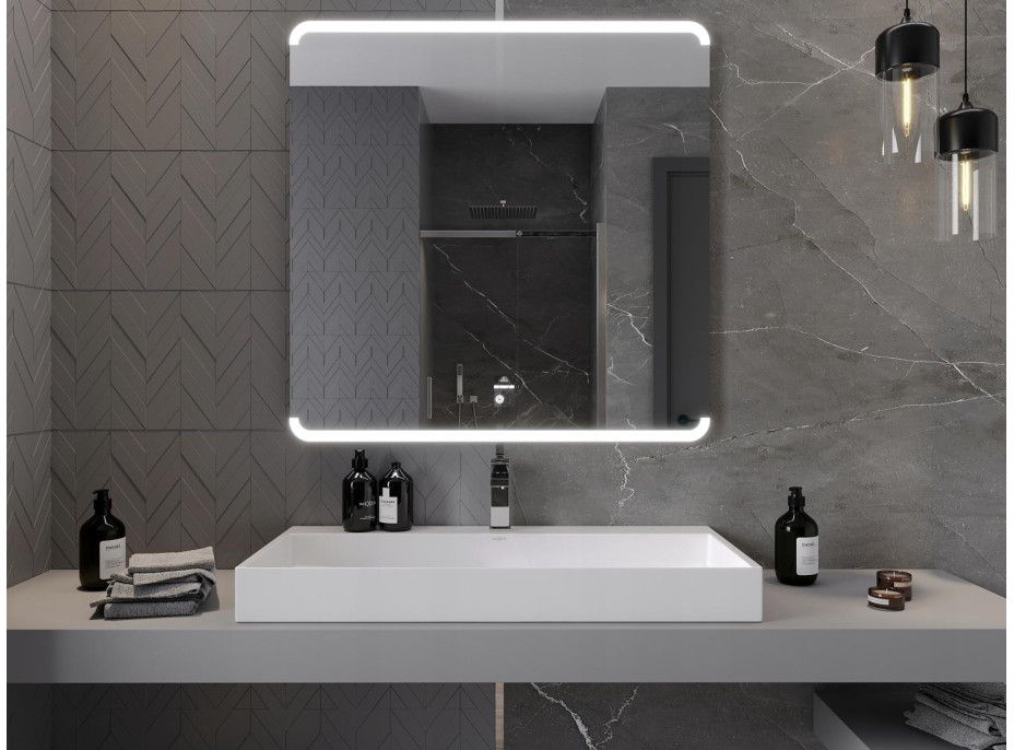 Elegantné a jednoduché štvorcové zrkadlo kolekcie NIDA je vybavené LED podsvietením, ktoré sa ľahko ovláda pomocou dotykového tlačidla priamo na ploche zrkadla. Zrkadlo je vybavené vyhrievacou podložkou, ktorá eliminuje zahmlenie skla.