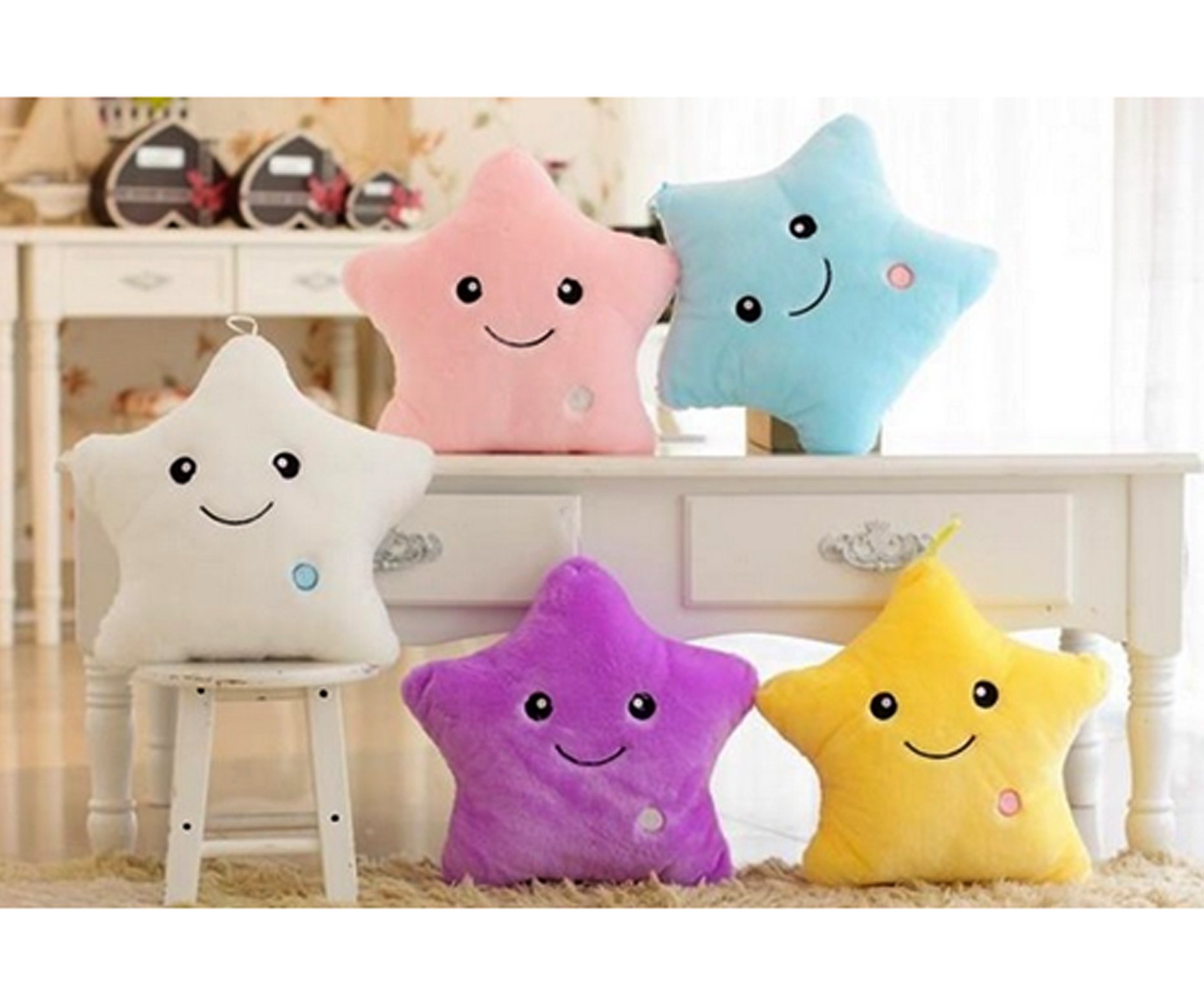 Máte vypínač na opačnom konci izby a ako k nemu prídete, tak si dvakrát skopná palec? Od týchto nepríjemností vám pomôže svietiace vankúš v tvare hviezdy. Je to tiež výborná variant do detských izieb pre chlapcov a dievčatá, ktorí neradi zaspávajú potme. Smajlík na jeho povrchu navyše navodí dobrú náladu. Vybrať si môžete z niekoľkých farebných variantov. Povlak je vyrobený z jemného, plyš pripomínajúceho materiálu a je na zips. Vnútri vankúše nájdete LED svetlo, ktoré napája tri AA batérie. Tie však nie sú súčasťou balenia. Vankúš dodávame aj s výplňou.