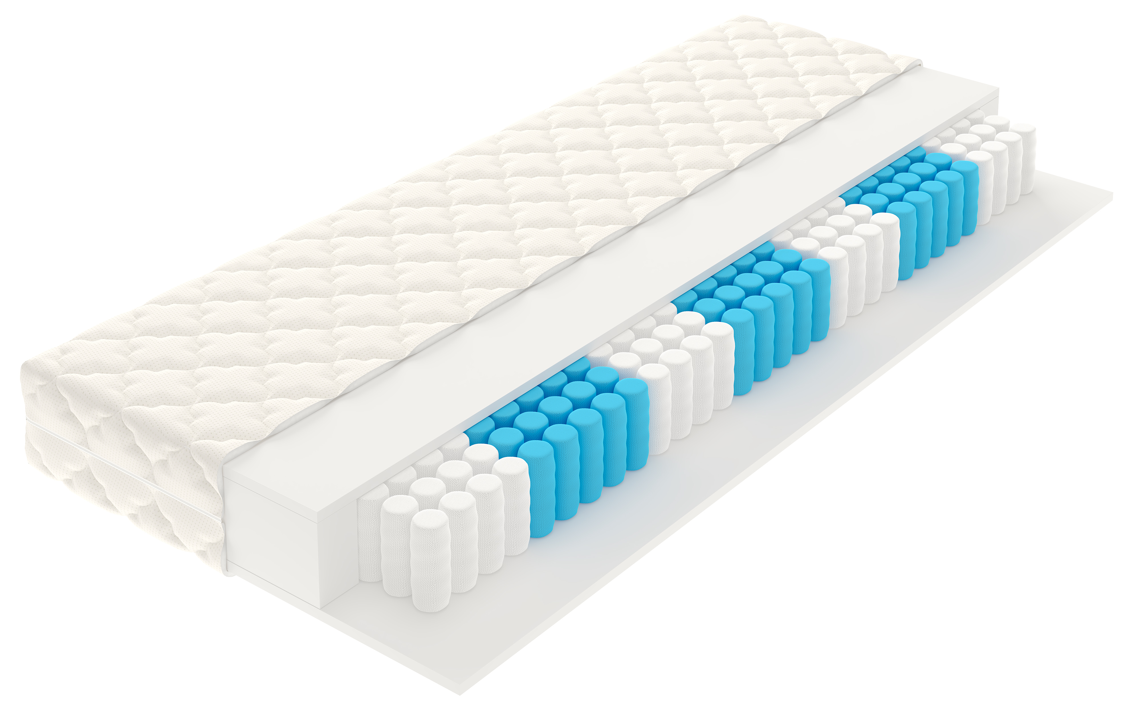 - blok pružín (256 ks / m²) sú rozdelené do nezávislých blokov s odlišnou tuhosťou a vytvárajú tak 7 anatomických zón s individuálnou podporou jednotlivých častí tela