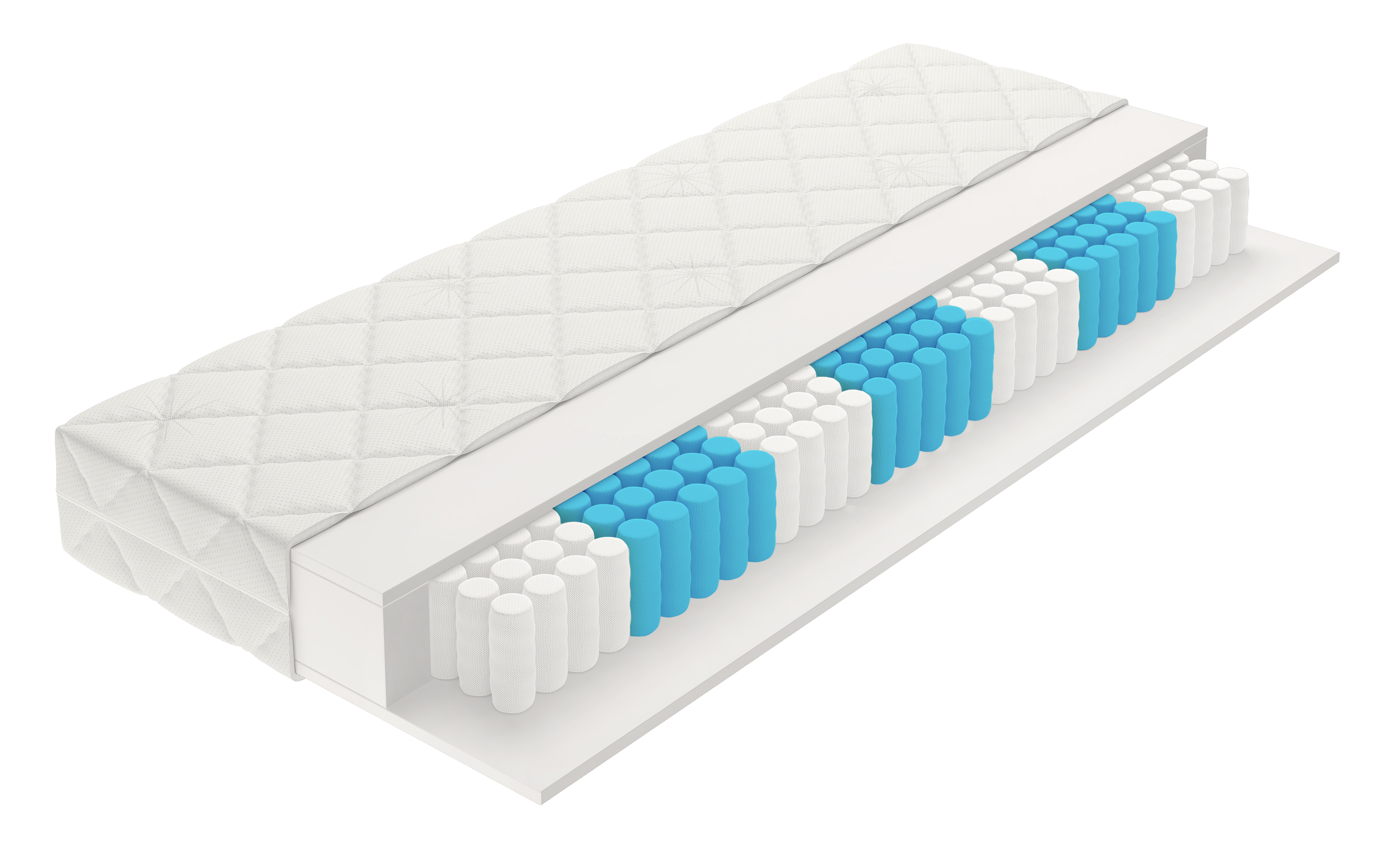 - blok pružín (256 ks / m²) sú rozdelené do nezávislých blokov s odlišnou tuhosťou a vytvárajú tak 7 anatomických zón s individuálnou podporou jednotlivých častí tela