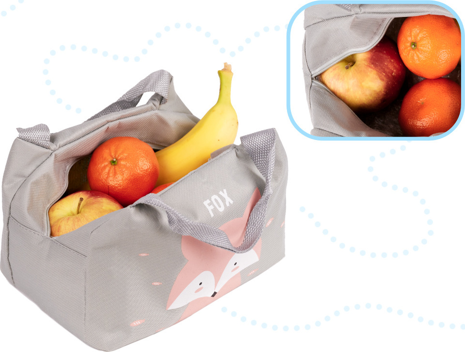Má jednu priehradku na zips. Ľahko sa do nej zmestí sendvič, krabička s teplými jedlami a malá termoska. Je veľmi ľahká a praktická. Má pohodlné rukoväte, ktoré umožňujú nosiť ju v ruke alebo ju zavesiť na ramienko. A keď ju už nepotrebujete, môžete ju zložiť a uložiť do batohu alebo kabelky. Vnútri má termo vrstvu, ktorá zaisťuje, že jedlo zostane dlho teplé a čerstvé. Je ideálny nielen pre deti, ale aj pre dospelých. Navyše má špeciálnu rukoväť, ktorá uľahčuje zavesenie.