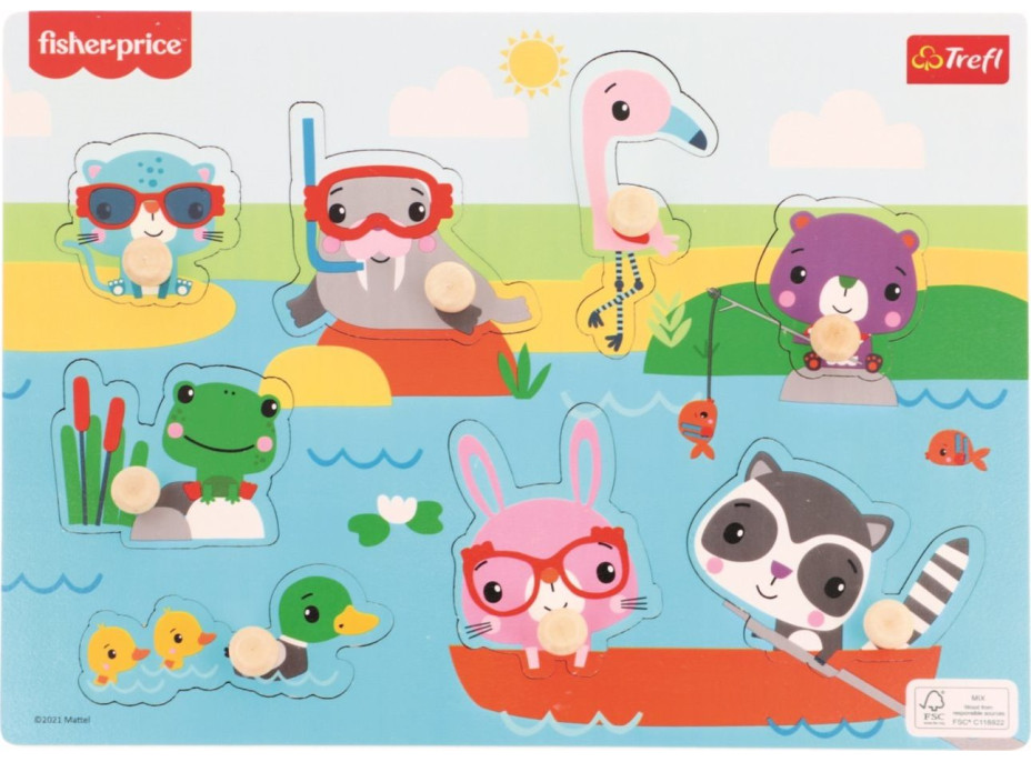 TREFL Drevená vkladačka Fisher Price Zvieratká pri vode
