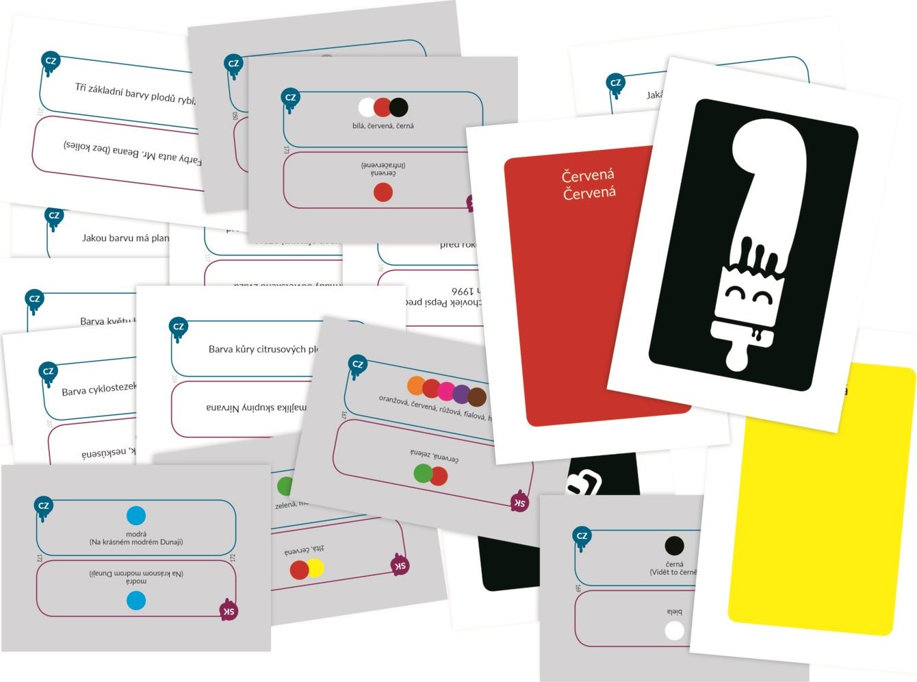 Mazané otázky. Pestrofarebné odpovede. Ako poriadne oživiť starý dobrý kvíz? Jednoducho. Skúste ešte pred začiatkom hry dať všetkým do ruky odpovede - farby. Na začiatku si všetci vezmite 11 farebných kariet. Pomocou nich potom odpovedajte na mazané otázky a sledujte, ako vám pribúdajú body. Hra obsahuje otázky typu: "Dve farby, ktorých zmiešaním vznikne fialová? Farba vozidiel v Londýne, New Yorku a Ríme?" A ďalšie zábavné a málinko zákerné otázky... Balenie obsahuje kartičky s otázkami a farebné karty odpovedí. Vhodné pre deti od 12 rokov.Vlastnosti