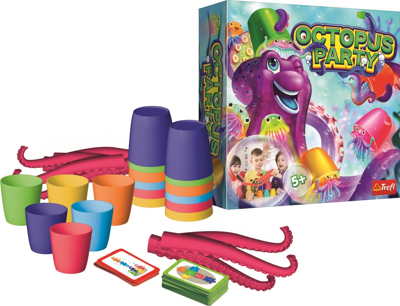 Skvelá hra pre deti a ich rodičov od výrobcu TREFL. Prijmite výzvu, kde musíte poraziť hráča v súboji s chápadlami. Každý hráč si nasadí 3 chápadlá a súboj môže začať! Hráči sa snažia uchopiť tégliky v správnom poradí podľa vzoru na kartičke. Kartu si vyberáte pred začiatkom hry. Vyhráva hráč, ktorý ich získa najviac v určenom časovom limite. Vhodné pre deti od 5 rokov.Vlastnosti