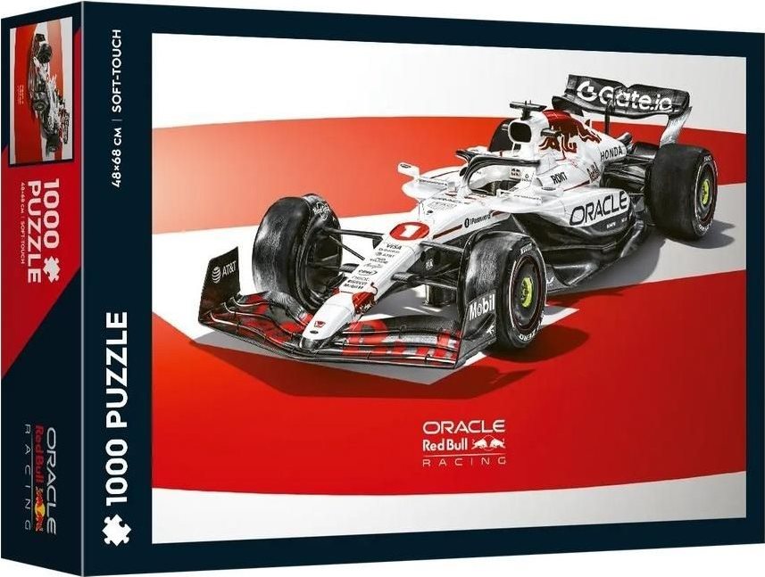 RedPuzzle 1000 dielikov Red Bull Racing – The White Bull Honda Livery zachytávajú ikonický monopost v jedinečnom dizajne „White Bull“, vytvorenom v spolupráci s Hondou. Tento výnimočný motív inšpirovaný motoršportom a Formulou 1 poteší fanúšikov závodných áut, moderného dizajnu aj zberateľských edícií. Vďaka tlači vo vysokom rozlíšení a precízne vyrezaným dielikom vznikne po zložení obraz o rozmeroch 48 × 68 cm, ideálny na zarámovanie alebo ako štýlová dekorácia. Povrch Soft Touch zaisťuje matný vzhľad, príjemný dotyk a výrazné, detailné farby. .Skvelá voľba pre milovníkov závodných áut, motoršportu a náročnejších puzzle. Rozmer zloženého puzzle cca 68 x 48 cmVlastnosti
