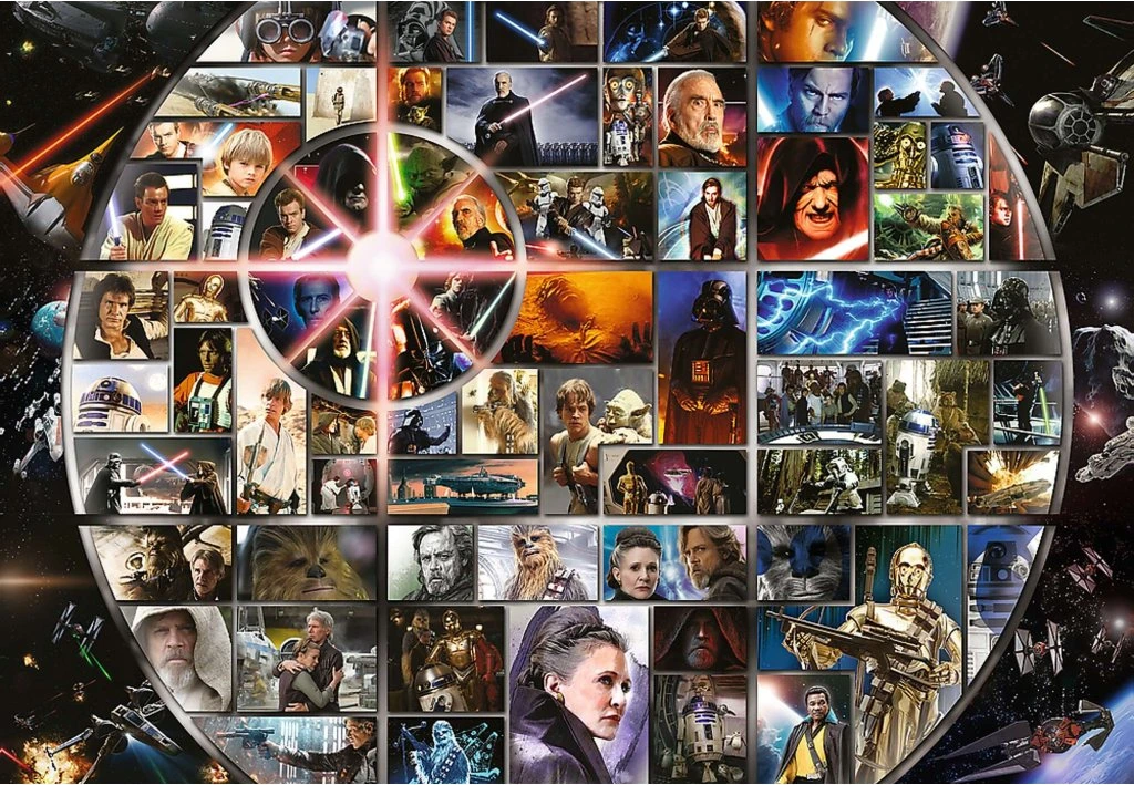 Najznámejšie postavy zo Star Wars. Každý obrázok je balený samostatne (9x1500 dielikov). Vďaka technológii TREFL Unlimited Fit Technology (UFT), ktorá umožňuje spojenie jednotlivých obrázkov medzi sebou, môžete vytvoriť ľubovoľnú kompozíciu obrázkov alebo sa držať rozmiestnenia podľa predlohy. Najvyššia kvalita – puzzle je vyrobené z najsilnejšieho modrého kartónového podkladu. Unikátna technológia UFT umožňuje vytvorenie vlastnej kompozície. Puzzle dieliky držia pri sebe - poskladané obrázky je možné pohodlne premiestňovať bez toho, aby sa zložený motív rozsypal. Bio balenie - bez vrchnej plastovej fólie. Vnútorné vrecko je úplne biologicky rozložiteľné a kompostovateľné. Puzzle je balené v deviatich samostatných vreckách po 1500 dielikoch. Súčasťou balenia je aj papierová predloha o rozmere 67x45cm. Rozmer zloženého puzzle cca 198,6 x 137,6 cmVlastnosti
