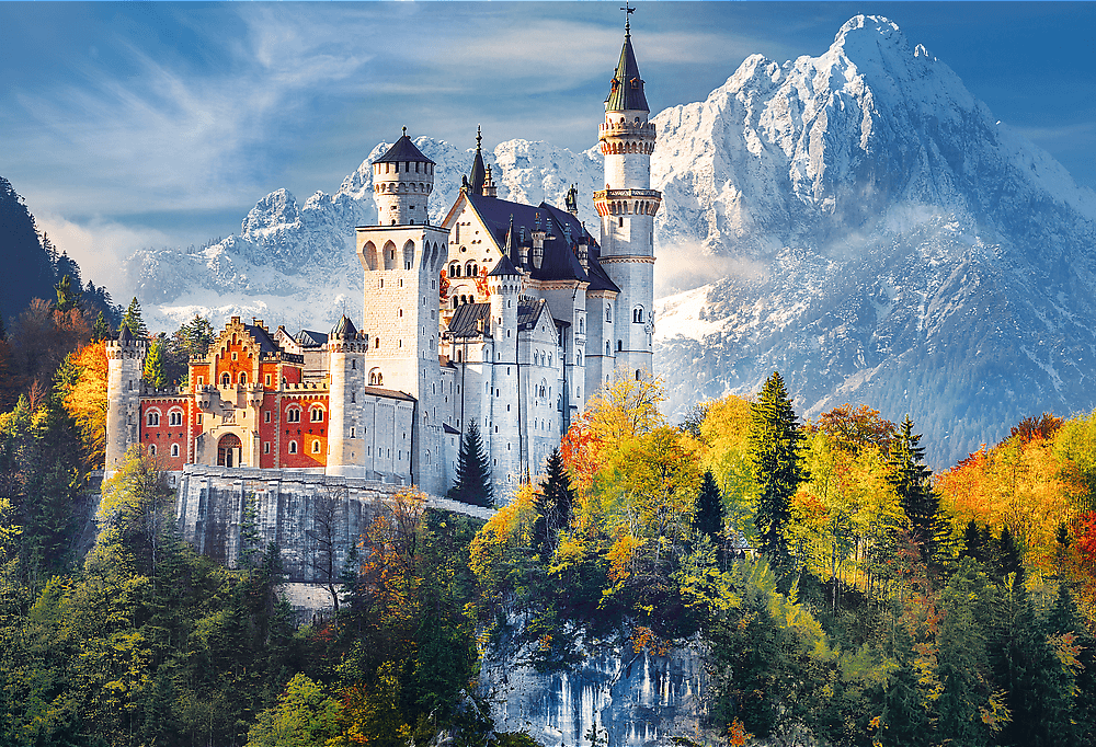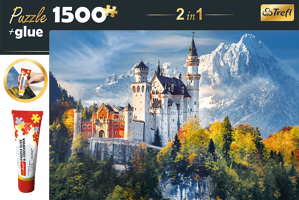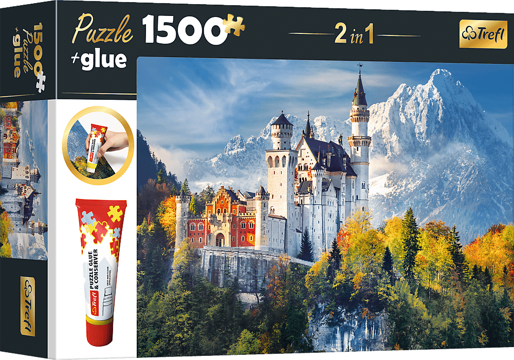TREFL Sada 2v1 puzzle Zámok Neuschwanstein na jeseň 1500 dielikov s lepidlom