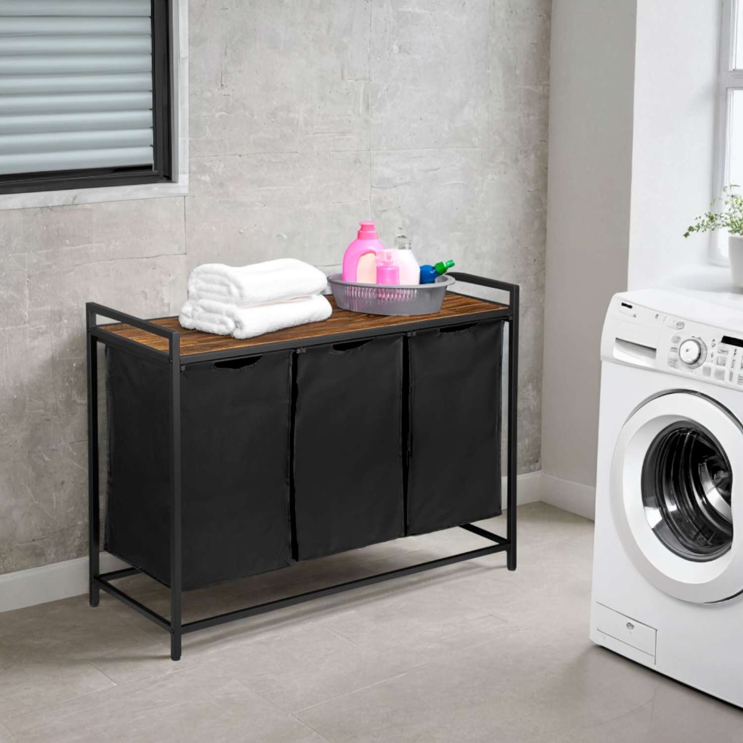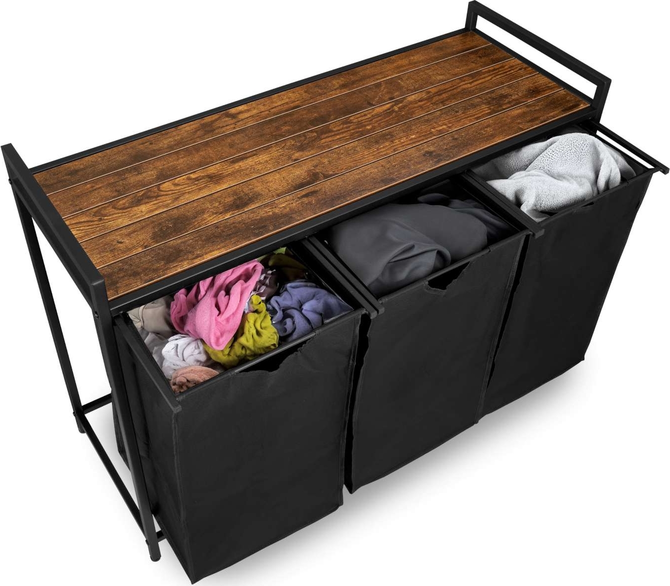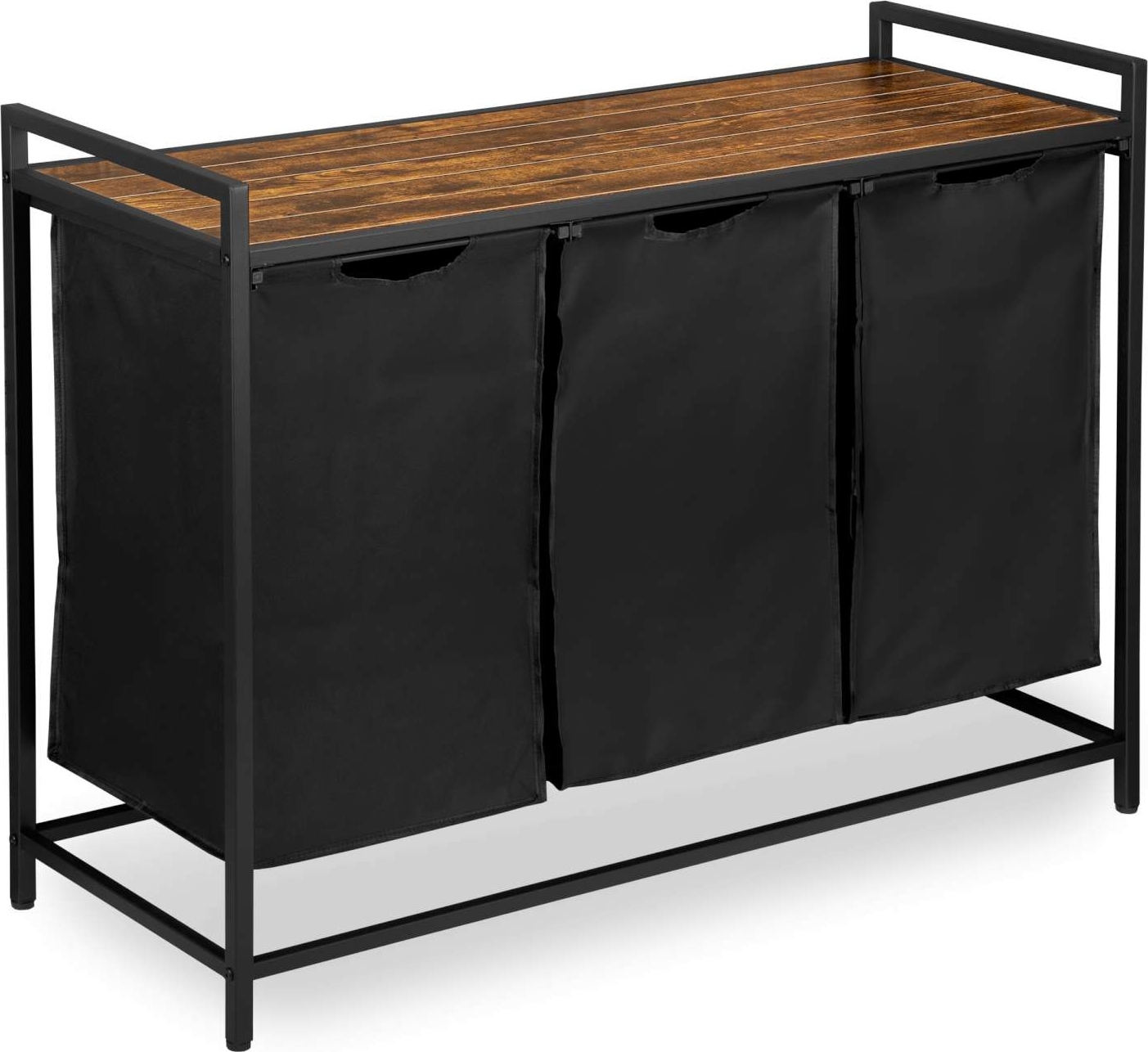 Trojkomorový kôš na bielizeň ARTUS 160L - čierny/starený dub