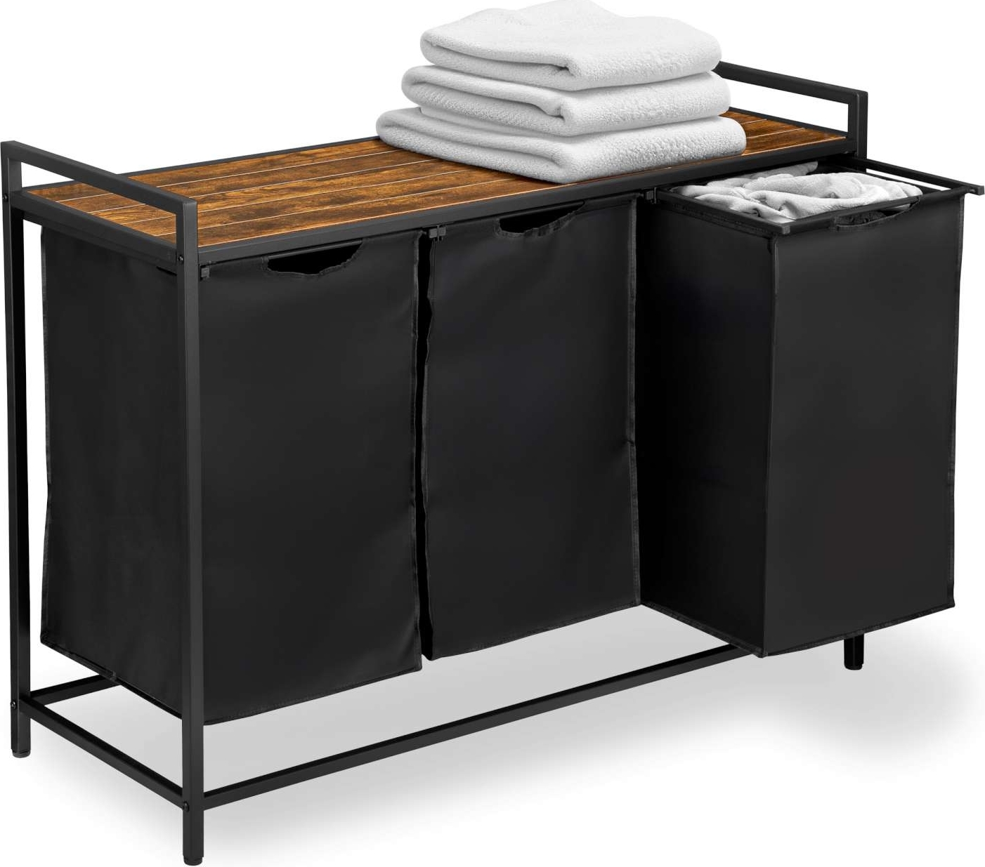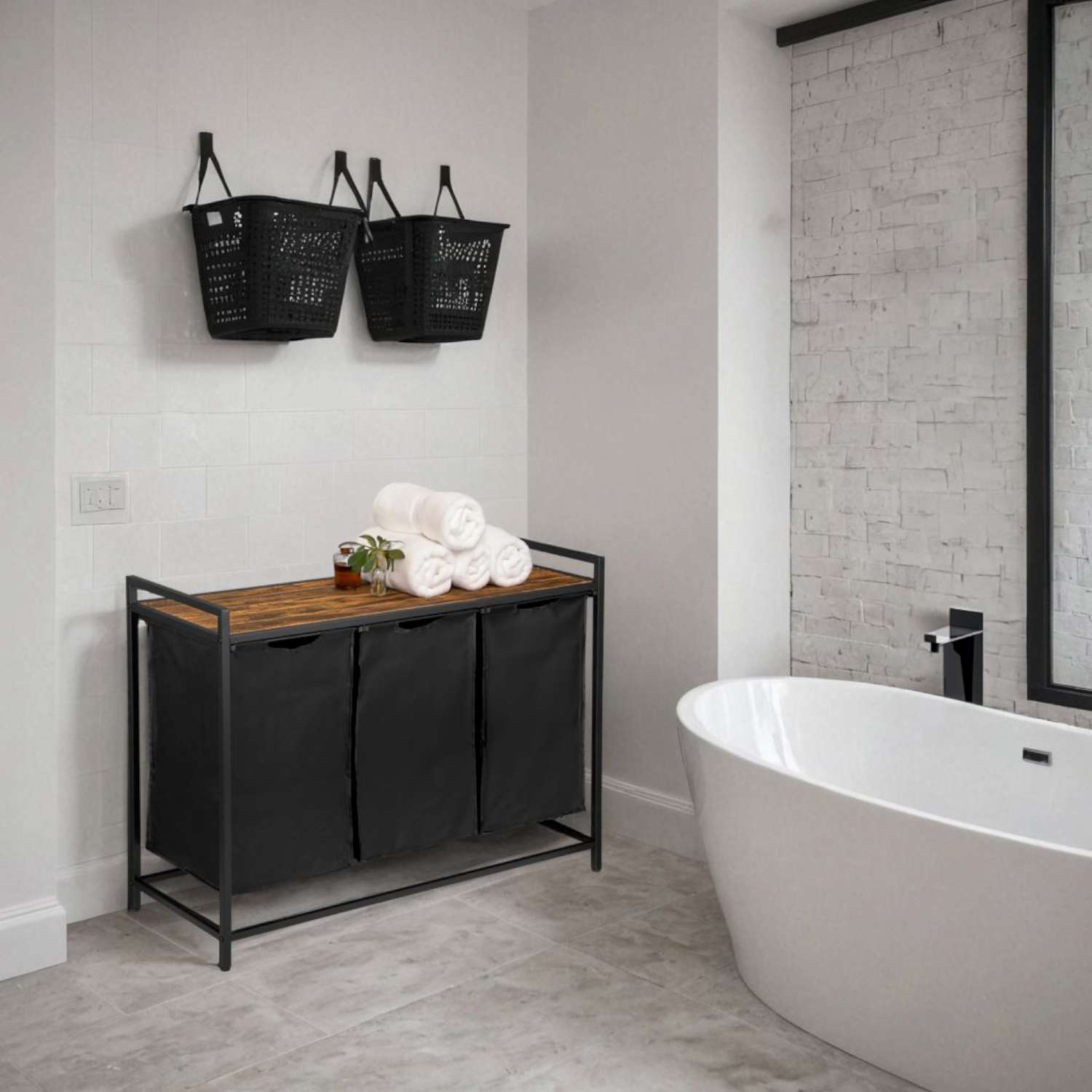 Trojkomorový kôš na bielizeň Artus je nenahraditeľným riešením pre tých, ktorí si chcú užiť usporiadanú a funkčnú kúpeľňu. Vďaka trom samostatným priehradkám ľahko roztriedite bielizeň, čo šetrí váš čas a uľahčuje každodenné povinnosti. Moderný, industriálny design koša Artus dokonale zapadne do každého interiéru a dodá mu štýl a eleganciu. Ďalšia polička na uteráky a kúpeľňové doplnky poskytuje ešte väčšie pohodlie a maximálne využíva dostupný priestor.