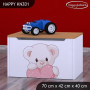 Detská truhla na hračky zo série detského nábytku Happy babies. Tento detský box na hračky môže slúžiť na úschovu a skladovanie i rozmernejších a hmotnejších hračiek, hier, stavebníc a detských kníh. Ideálne do vybavenia detskej izby alebo hracieho kútika. Ponúkame Vám krásnu detskú truhlu, ktorá je vyrobená z vysoko kvalitnej lamino dosky a na čele má krásny farebná potlač, ktorý sa Vášmu dieťaťu určite zalejú bí.
