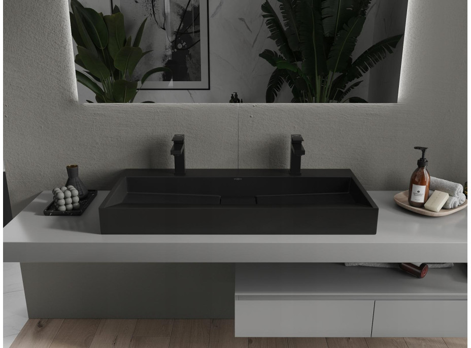 Umývadlo z liateho mramoru AVA 100 cm - s otvorom pre 2 batérie - čierne