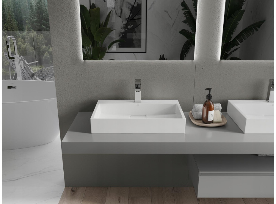 Umývadlo vyrobené z liateho mramoru je krásne, mimoriadne funkčné a moderné. Dokonale pasuje do modernej kúpeľne, kde dopĺňa estetiku kúpeľne a dodáva pocit luxusu. Umývadlo je vyrobené z vysoko kvalitného liateho mramoru, ktorý sa vyznačuje obrovskou odolnosťou proti poškriabaniu, poškodeniu aj vysokým teplotám.