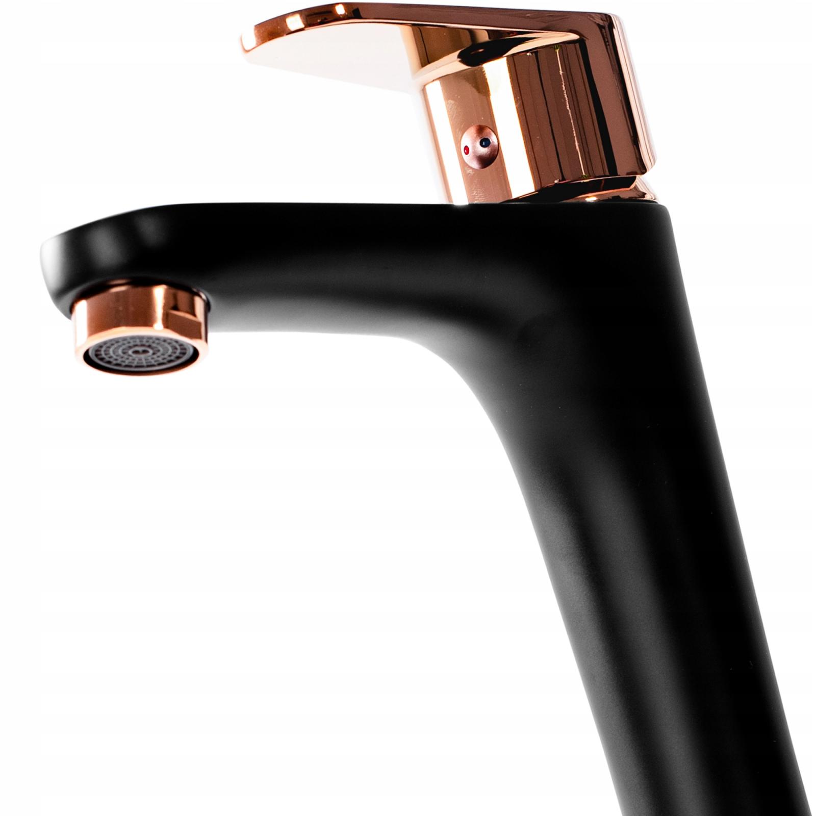 Telo modernej vodovodnej batérie je vyrobené z mosadze s čiernou matnou povrchovou úpravou s doplnkami so zlatou povrchovou úpravou v odtieni rose gold. Batéria sa hodí do každej kúpeľne a je možné ju bez problémov kombinovať s keramikou aj sklom.