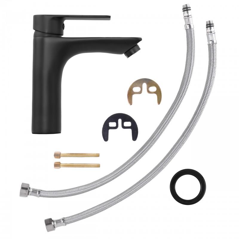 Tato elegantní umyvadlová baterie vyniká svým moderním a minimalistickým vzhledem. Tělo vodovodní baterie je vyrobeno z oceli, které je pokryto vrstvou černé matné barvy. Dohromady s hranatými tvary baterie to vytváří nadčasový celek, díky kterému bude baterie nejen funkční, ale i skvělým designovým doplňkem. Baterie se hodí do každé koupelny a lze ji bez problému kombinovat s keramikou i sklem. Systém uvnitř baterie efektivně provzdušňuje vodu, což přináší nižší spotřebu. Dodáváno včetně těsnění, hadiček i montážního materiálu.