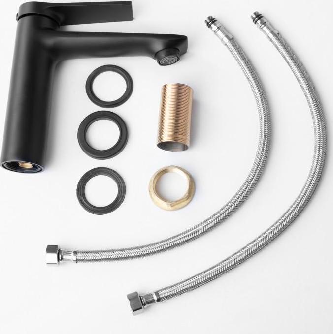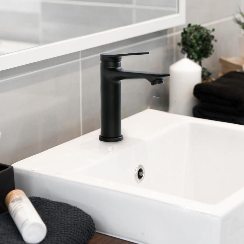 Tato elegantní umyvadlová baterie vyniká svým moderním a minimalistickým vzhledem. Tělo vodovodní baterie je vyrobeno z oceli, které je pokryto vrstvou černé matné barvy. Dohromady s hranatými tvary baterie to vytváří nadčasový celek, díky kterému bude baterie nejen funkční, ale i skvělým designovým doplňkem. Baterie se hodí do každé koupelny a lze ji bez problému kombinovat s keramikou i sklem. Systém uvnitř baterie efektivně provzdušňuje vodu, což přináší nižší spotřebu. Dodáváno včetně těsnění, hadiček i montážního materiálu.