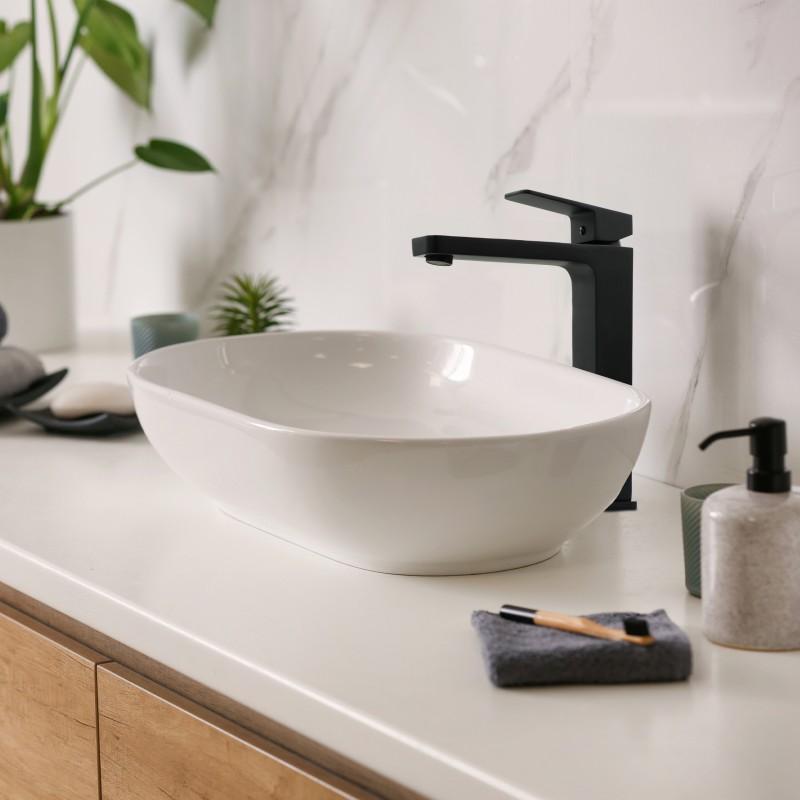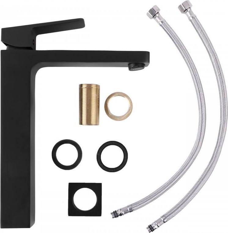 Tato elegantní umyvadlová baterie vyniká svým moderním a minimalistickým vzhledem. Tělo vodovodní baterie je vyrobeno z oceli, které je pokryto vrstvou černé matné barvy. Dohromady s hranatými tvary baterie to vytváří nadčasový celek, díky kterému bude baterie nejen funkční, ale i skvělým designovým doplňkem. Baterie se hodí do každé koupelny a lze ji bez problému kombinovat s keramikou i sklem. Systém uvnitř baterie efektivně provzdušňuje vodu, což přináší nižší spotřebu. Dodáváno včetně těsnění, hadiček i montážního materiálu.