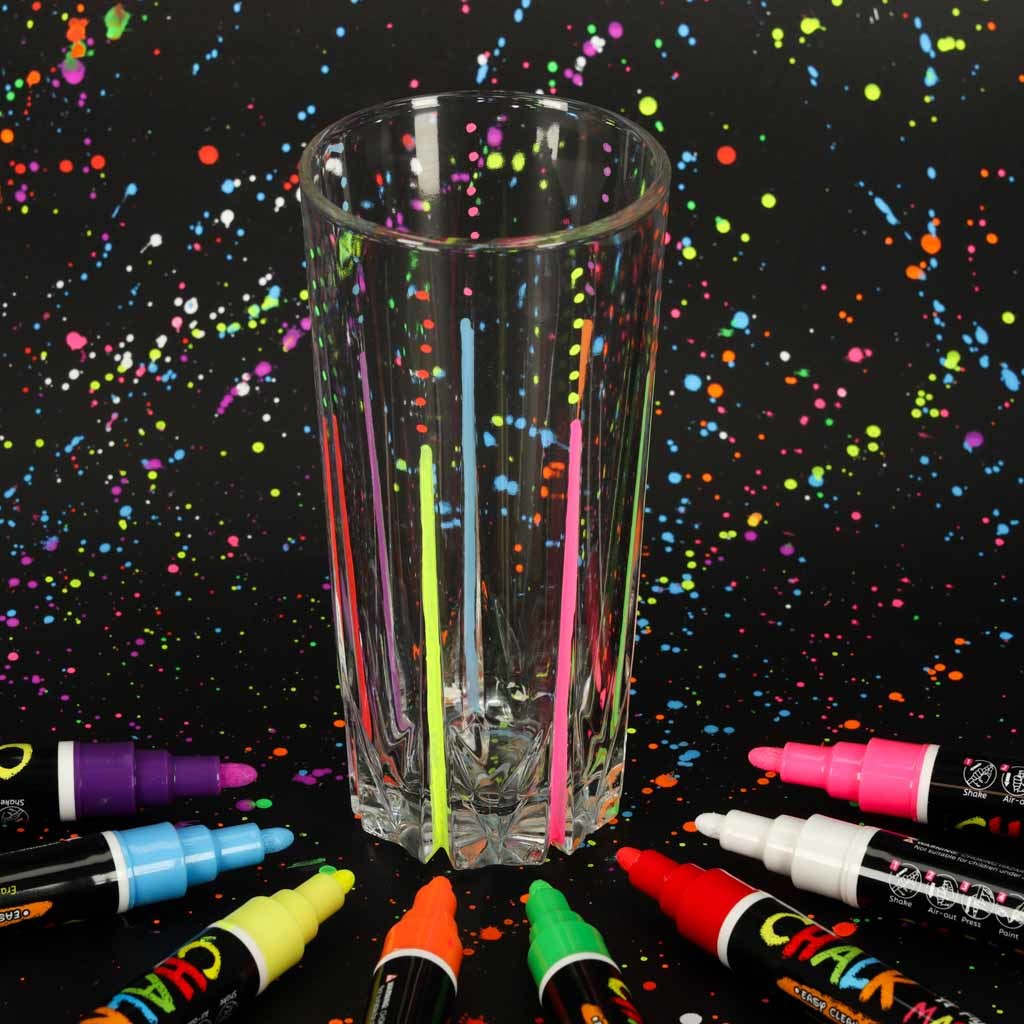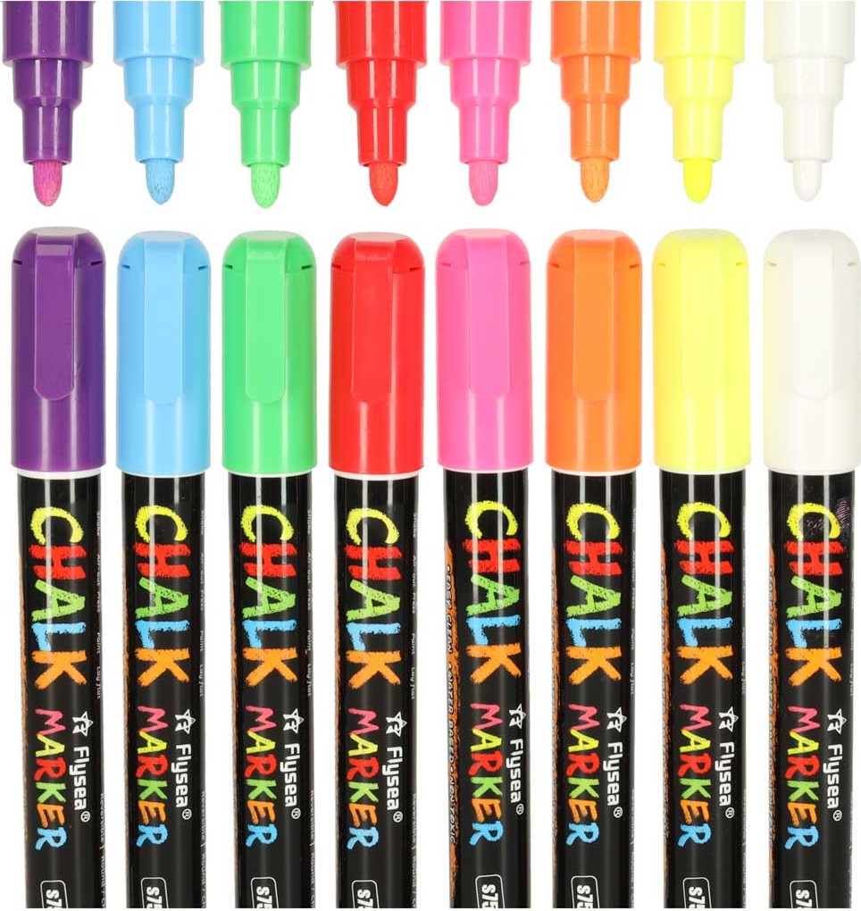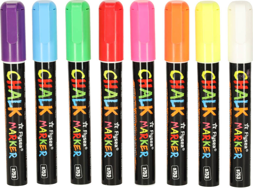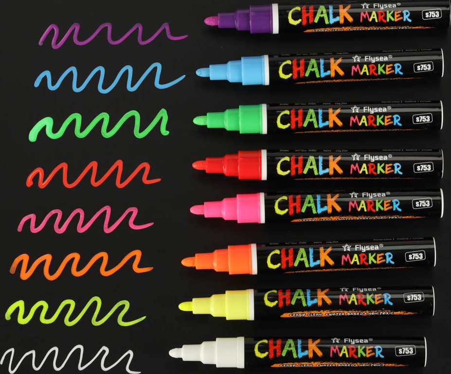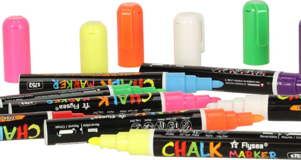 Nie sú to obyčajné fixky - sú to kriedové fixky na písanie, zdobenie a reklamu, ktoré sú všestranné. Každý tekutý kriedový popisovač píše hladko a ostro a navyše ho môžete potom ľahko zmyť - stačí vám na to vlhkú handričku. V sade nájdete aj biely kriedový popisovač, ktorý je ideálny prokontrastné nápisy na tmavých povrchoch. Chcete vytvoriť nápisy na náklady, vyzdobiť stánok pred prevádzkarňou alebo treba ozvláštniť hranie s dieťaťom? Tieto kriedové popisovače na sklo a biele tabule sú vhodné pre všetko od výučby hrou až po profesionálnu výzdobu. Skvele sa hodí aj ako kriedové popisovače na kreslenie, bary a reštaurácie - dobre sa uplatní tam, kde je dôležitá estetika a jednoduché použitie. Tieto kriedové popisovače na písanie na sklo a biele tabule sú absolútnou nevyhnutnosťou v detskej izbe, zázemí kaviarne alebo školskej triede. Tvorte, hrajte sa, učte sa a zmývajte, kedykoľvek sa vám zachce. S pomocou kriedového popisovača sa akýkoľvek povrch premení na farebný priestor.