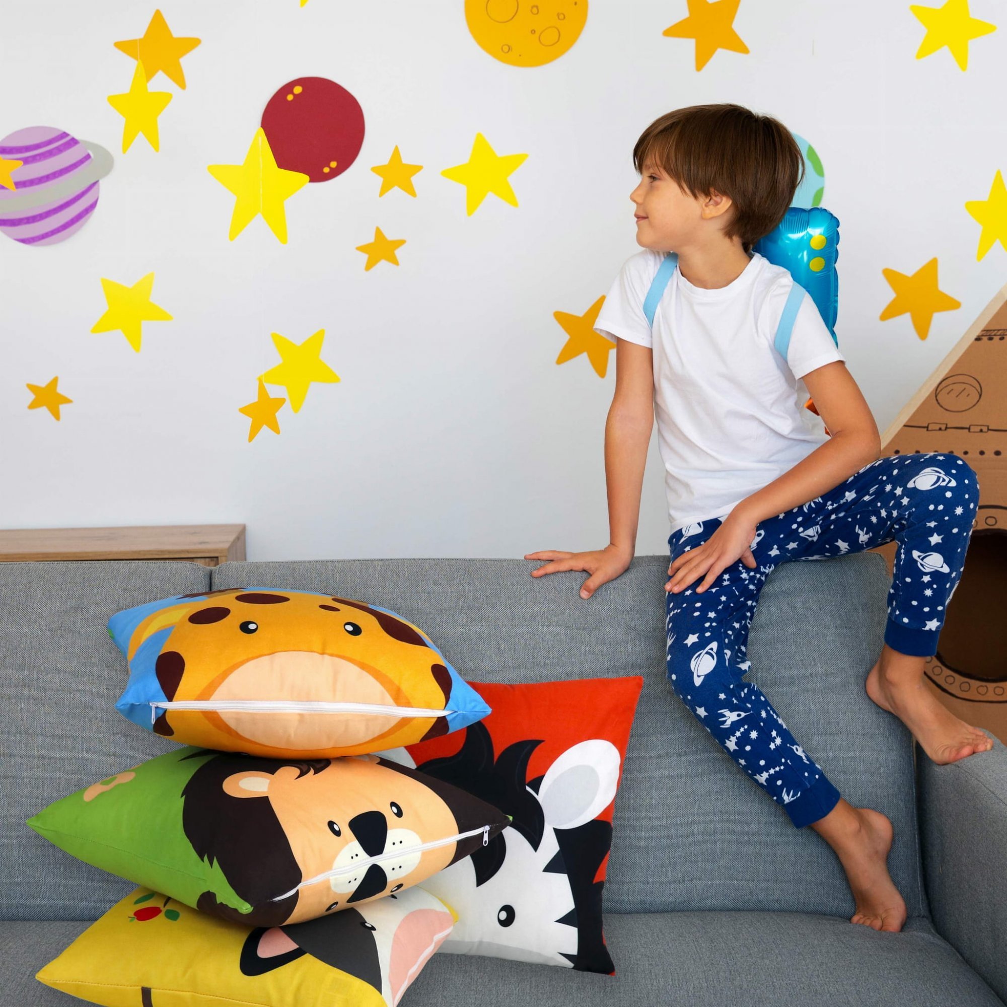 Originálny dekoračný vankúš s jedinečným vzorom dokonale doplní interiér detskej izby, ktorý tak získa charakter a podčiarkne individuálny štýl. Vankúš SAFARI bude perfektnou dekoráciou do detskej izby pre batoľatá aj väčšie deti. Dekoračný vankúš s výplňou je vyrobený z kvalitnej látky. Je mäkký a príjemný na dotyk, vyznačuje sa starostlivým šitím. Obliečka vankúša má zapínanie na zips, výplň vankúša je z dutého silikónového vlákna. Vysoká kvalita použitých materiálov, presnosť a solídnosť spracovania zaručujú odolnosť pri používaní a ľahké čistenie v prípade znečistenia.