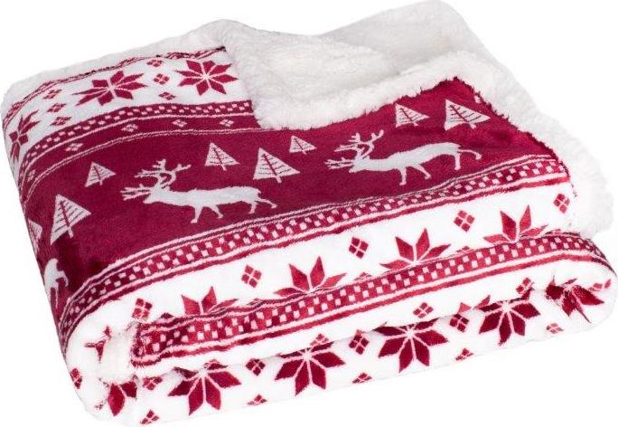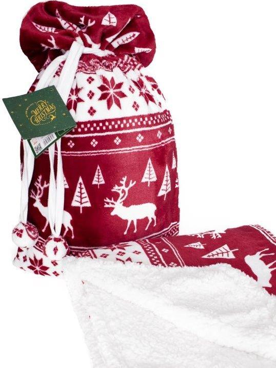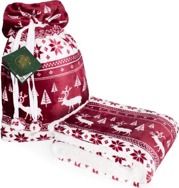 Vianočná deka SACO s baránkom 127x152 cm v ozdobnom obale - bordó