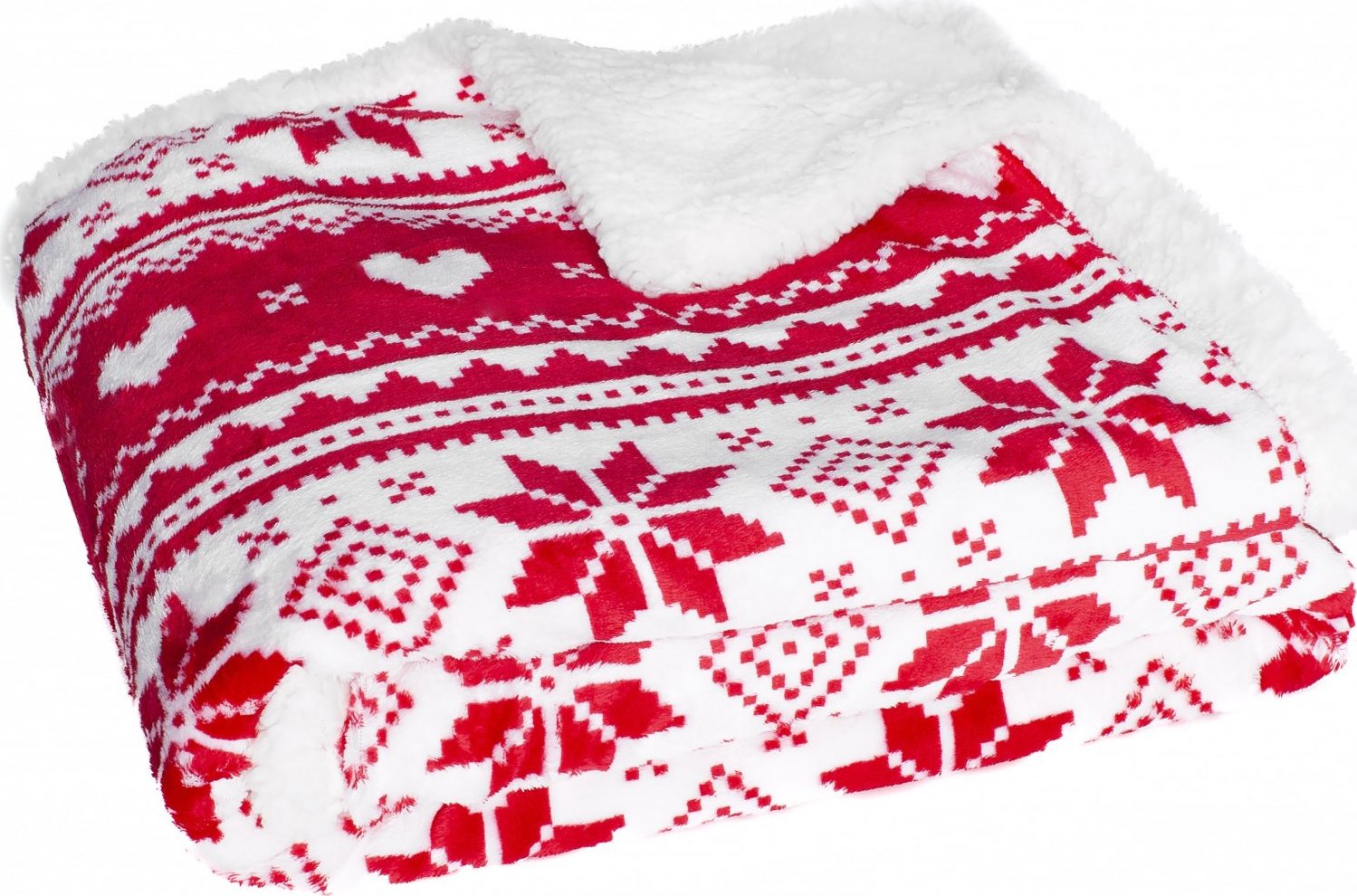 Vianočná deka SACO s baránkom 150x200 cm v ozdobnom obale - červená