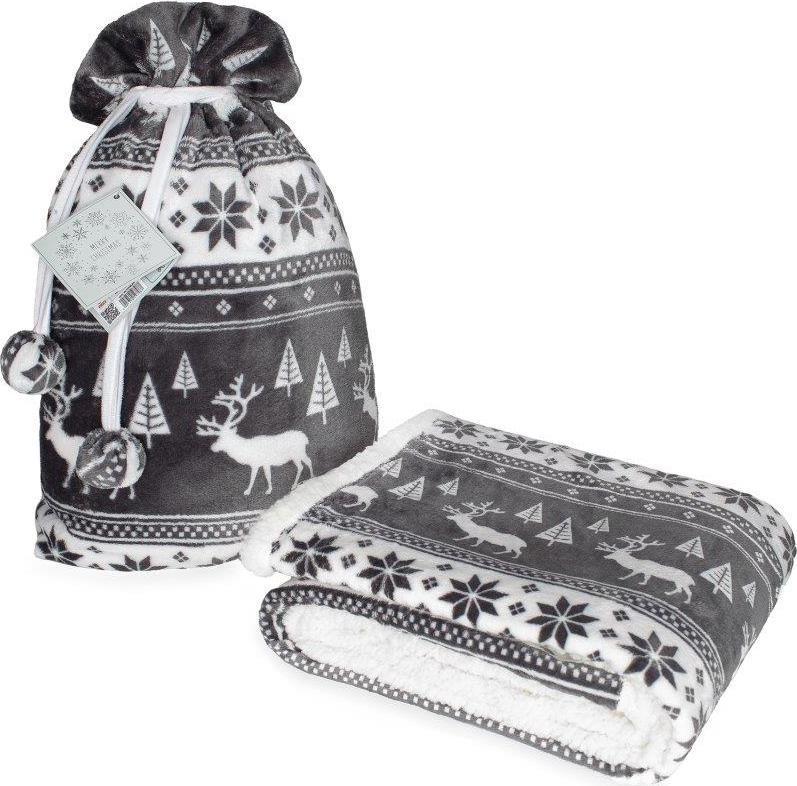 Vianočná deka z kolekcie Saco je skvelým nápadom na darček a ideálna na zdobenie vášho domova počas zimného a vianočného obdobia. Deka je vyrobená z polyesterovej tkaniny, ktorá sa ľahko čistí. Tento materiál je mäkký, teplý a praktický. Deka má zvonku sviatočný škandinávsky vzor a zvnútra je podšitá jednofarebnou bielou šerpa látkou, ktorá je hrejivá ako vlna. Táto jemná látka sa vyznačuje hypoalergénnym zložením. Celá sada je zabalená v štýlovom sáčku, ktorý ladí s dekou farbou aj vzorom. Táto sada je ideálnym darčekom.