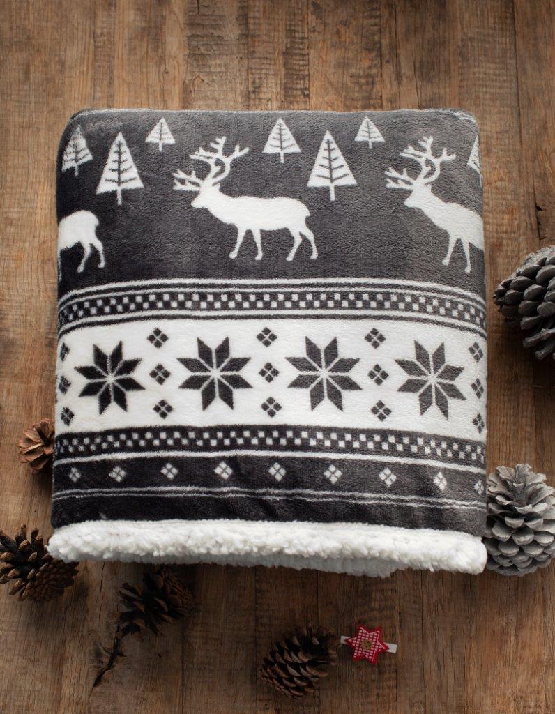 Vianočná deka SACO s baránkom 150x200 cm v ozdobnom obale - tmavo šedá