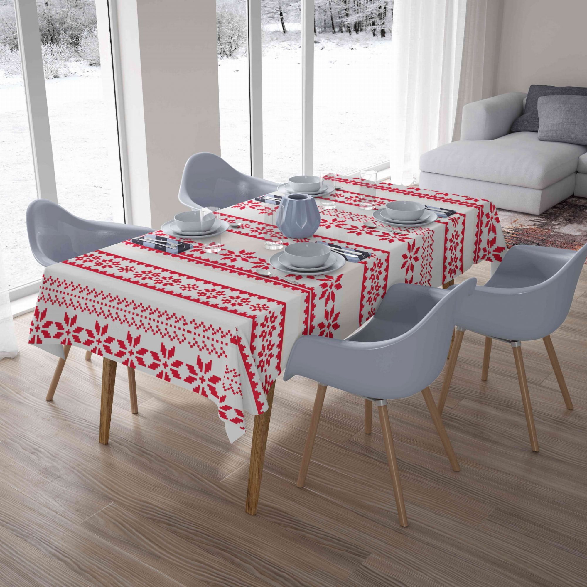 Vianočný obrus SCANDI Snehové vločky - 140x200 cm - biely/červený