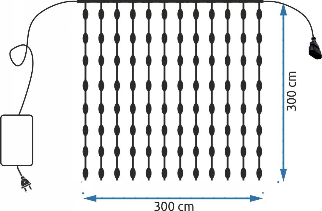 - Šírka závesu: 3 m + 100 cm prívodný kábel