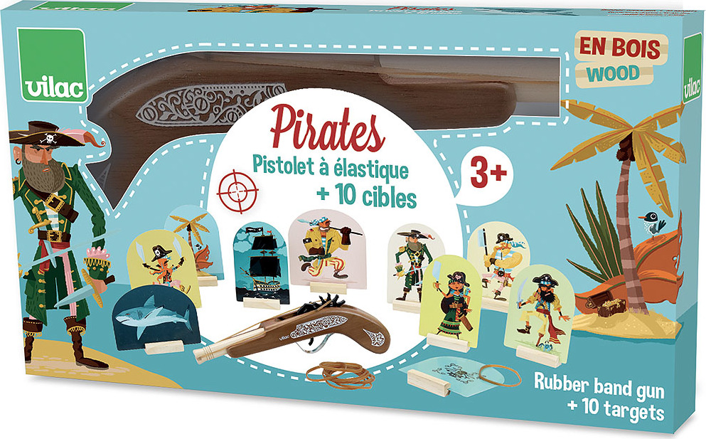 Vilac Drevená pirátska pištoľ s gumičkami a terčmi