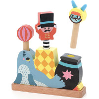 Krásna drevená vystreľovacia hra s ilustráciami umelkyne Michelle Carlslund v motíve cirkusových čísel. Balón a dve postavičky vyskakujú z cirkusovej základne. Zázrak vynaliezavosti a jednoduchosti určite očarí malých aj veľkých. Zatlačte na balón či postavičky a uvidíte, ako vyskočí do vzduchu. Hračka je ideálna pre rozvoj jemnej motoriky a koordinácie ruka-oko.