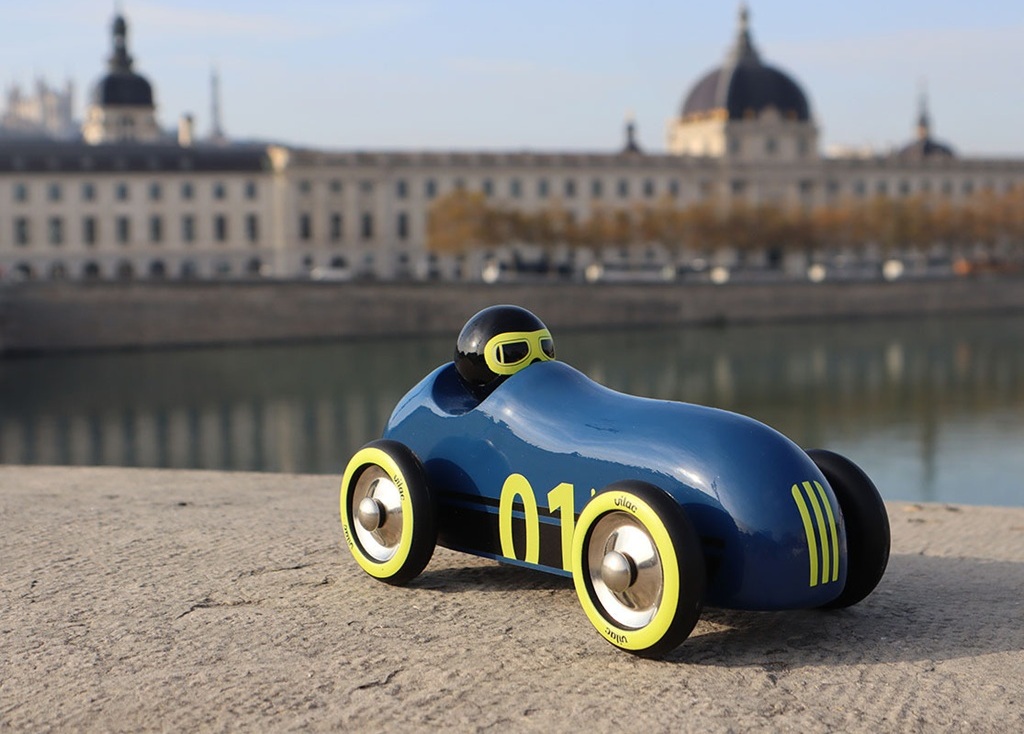 Neobyčajné autíčko oblých aerodynamických tvarov v jedinečnom dizajne, ktoré je určené na hranie aj ako atraktívny doplnok detskej izbičky alebo herne. Pri hre s autíčkom využíva dieťa mnoho zručností: jemnú motoriku, obratnosť, predstavivosť, kreativitu. Môže reprodukovať zvuky motora alebo sirén, parkovať do garáže, prechádzať sa. Hraním s ostatnými deťmi alebo členmi rodiny sa učia zdieľať, spolupracovať a napodobňovať, čím rozvíja dôležité sociálne zručnosti. Autíčko je vyrobené z masívneho bukového dreva, lakované ručne bezpečnými farbami tradičným procesom ponorenia do kúpeľa s farbou. Vyrobené vo Francúzsku, dodávané v potlačenej krabičke.