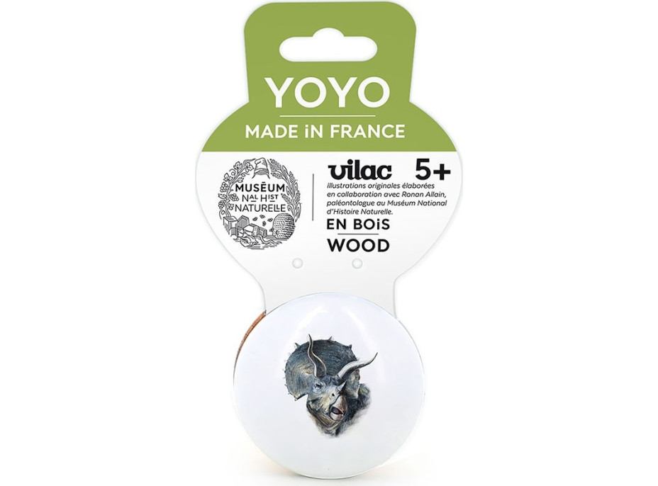 Vilac Triceratops jojo je kúsok pravekej histórie zábavná hračka dohromady. Je to most medzi minulosťou a súčasnosťou, ktorý prináša kúzlo dávnych čias priamo do vašich rúk. Materiál je z masívneho dreva, čo zaisťuje jeho odolnosť a dlhú životnosť. Každý kúsok je vyrobený s láskou vo Francúzsku, vo francúzskom pohorí Jura s dôrazom na kvalitu a tradíciu, v spolupráci s Ronanom Allainom, uznávaným paleontológom z Národného múzea prírodnej histórie. Nielenže si s týmto jojom užijete hodiny zábavy, ale stane sa aj významným predmetom vašej zbierky.
