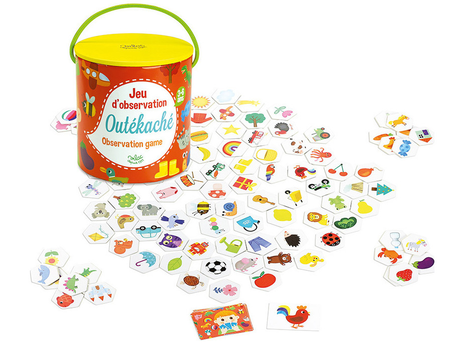 Preverte postreh Vašich detí! Kto medzi rozloženými dielikmi dokáže ako prvý nájsť obrázok zhodný s vyobrazením na kartičke? Hráči pritom musia dať pozorný pozor, v záplave obrázkov sa totiž ukrývajú aj chytáky! Herné dieliky sú pevné a odolné, vyrobené z dreva. Dodávané v praktickom a atraktívne dekorovanom vedre s dreveným vekom.