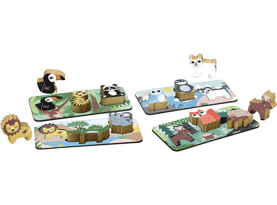 Súprava piatich známych detských hier v jedinečnom spracovaní so zvieracími hrdinami ilustrátorky Michelle Carlslund. Neminiete nakoniec cieľové políčko v Husacej hre? Prekonáte ako prvú kľukatú cestu v Hadoch a rebríkoch? Zhromaždíte najviac zvieratiek v Rybolove, Hmatej a nájdi, alebo variáciu Binga? Roztomilé farebné zvieracie figúrky Vás môžu sprevádzať nielen hrami v tejto súprave, ale aj mnohými inými aktivitami a navyše tiež môžu atraktívne skrášliť poličku v detskej izbičke. Súčasti sú vyrobené zo silnej preglejky a odolného masívneho dreva. V balení nájdete látkový sáčok, ktorý je možné využiť na hry aj jednoduché prenášanie. Dodávané v atraktívne dekorovanej a pevnej kartónovej krabičke.