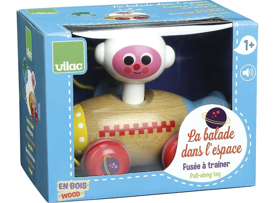 Ťahací kozmonaut v rakete, s ktorým deti môžu chodiť všade po dome. Pri stlačení hlavy vydáva zvuk klaksónu. Šnúrka má bezpečnostnú klipsňu. Ilustrovanou Ingelou P. Arrhenius.