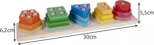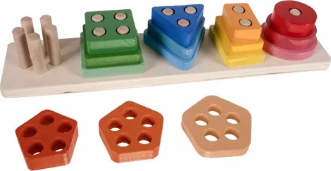 Drevené hračky sú nadčasové a odolné. V perfektnom stave môžu slúžiť po generácie. Drevená vkladačka osloví každé dieťa, ktoré má rado zručnostné hračky. Drevená vkladačka s blokmi bude vhodná pre chlapcov aj dievčatá. Hračka veľmi premysleným spôsobom rozvíja manuálne zručnosti detí, pomáha precvičovať motorickú koordináciu a rozvíja schopnosť logického myslenia. Princípom hry je nasadiť bloky na príslušnú vežu, podľa počtu otvorov. Tým si dieťa precvičuje trpezlivosť a koncentráciu. Sada obahuje bloky v 5 tvaroch: kruh, trojuholník, obdĺžnik, štvorec a päťuholník. Tieto základné tvary si dieťa upevňuje už od útleho veku hrou. Tieto prvky majú navyše krásne sýte farby, ktoré priťahujú detskú pozornosť.