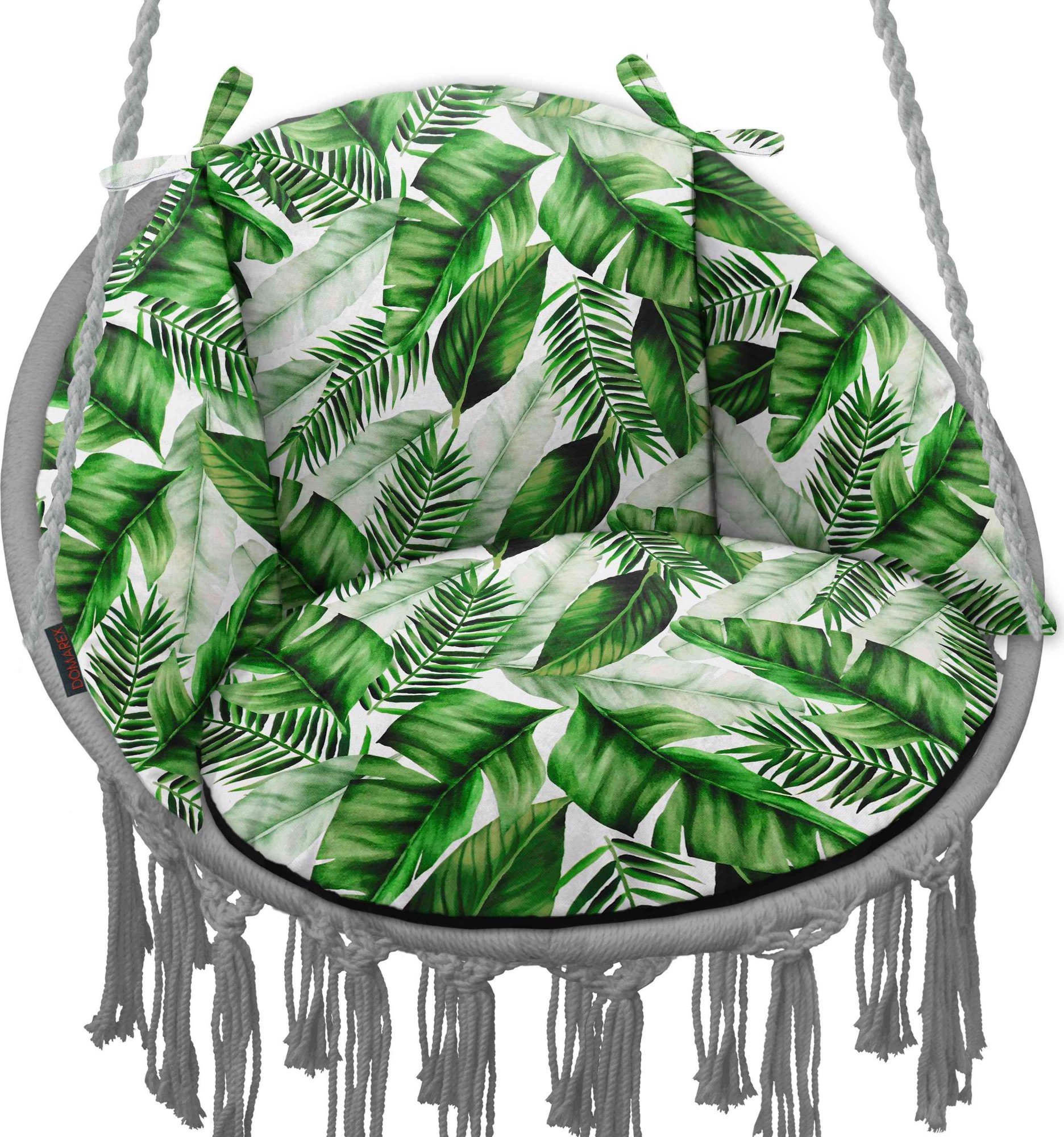 Používanie závesného hojdacieho kresla a kresla typu BOHO môže byť ešte pohodlnejšie, keď ho oživíte skvele padnúcim a mäkkým vankúšom vyrobeným z najkvalitnejších látok. Vankúš je vyrobený z vodeodolnej, mäkkej a na dotyk príjemnej látky. Vankúš v modernom tvare sa dokonalé prispôsobenie hojdačke, vďaka čomu je ešte pohodlnejšie. Vysoká kvalita použitých materiálov, presnosť a solídnosť spracovania zaručujú odolnosť pri používaní a ľahké čistenie v prípade znečistenia. Ručné čistenie vankúša vlhkou handričkou. Obojstranné prevedenie vankúša je skutočnou výhodou. Na jednej strane vyzerá efektne vďaka vzorovanej vodeodolnej látke, dodávajúcej svojmu okoliu charakter a originalitu, na druhej strane nájdete elegantnú jednoliatu farbu z vodeodolnej látky, ktorá sa skvele hodí ku každému dekoru. Silikónová výplň, ktorá vankúš vypĺňa, je veľmi jemná a extrémne mäkká a nadýchaná. Netkaná textília je bez zápachu a neabsorbuje vlhkosť.