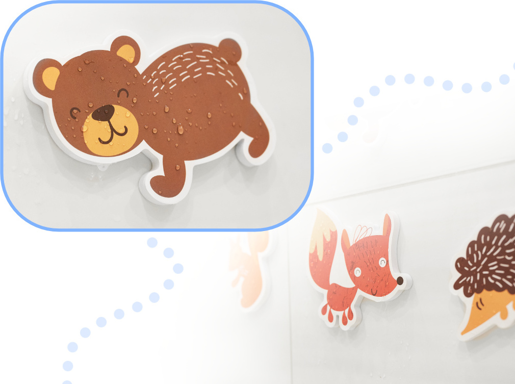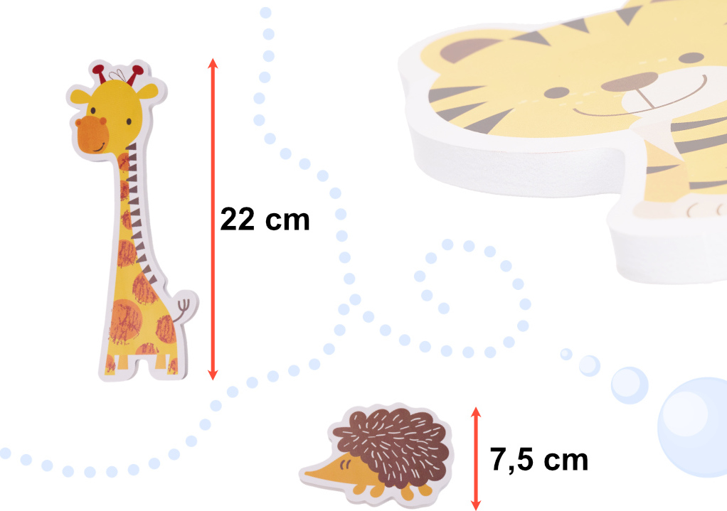 Táto sada zvieratiek z peny je hračka, ktorá premení každý kúpeľ v zábavné dobrodružstvo! Sada obsahuje 18 dielikov puzzle s rozkošnými zvieratkami, ako je žirafa, tiger a koala. Diely sa po namočení vo vode stanú lepkavými, takže ich ľahko prilepíte na vaňu alebo dlaždice a vytvoríte si tak vlastnú malú zoo. Táto hračka stimuluje kreativitu, podporuje rozvoj logického myslenia a zdokonaľuje jemnú motoriku, vďaka čomu sa kúpanie stane obľúbenou časťou dňa!