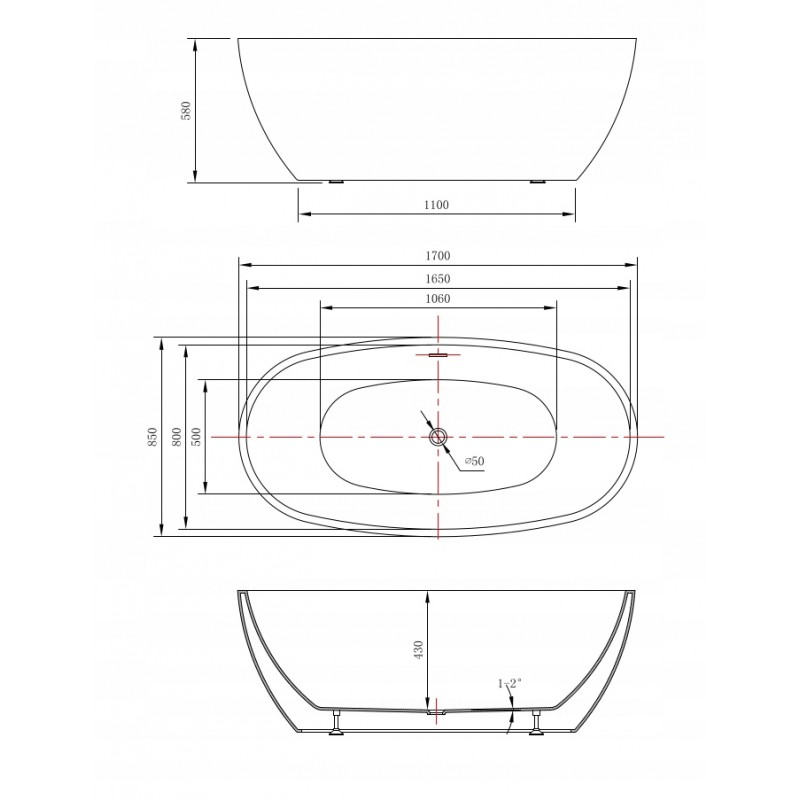 Voľne stojaca akrylátová vaňa ERIS 170x85 cm - biela